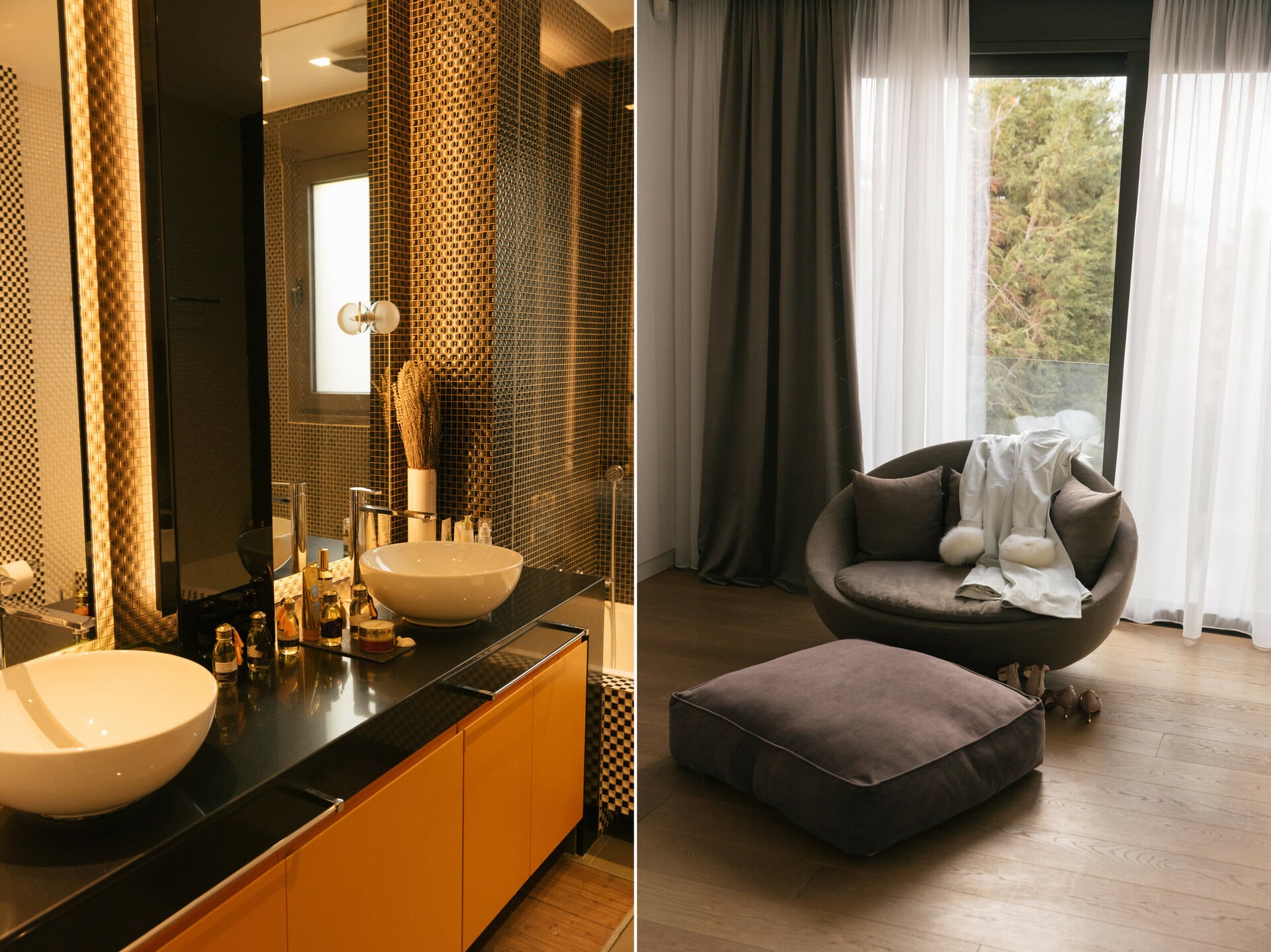 Μπαίνω στο καθιστικό και μεθάω με τη μυρωδιά του σπιτιού. Της λέω ότι δεν έχω μπει ποτέ ξανά σε πιο ευωδιαστό σπίτι και τη ρωτάω τι είναι αυτό που μυρίζουμε. Μου εξηγεί ότι πρόκειται για το έλαιο καύσης amber musk που φέρνει από το Μαρόκο.