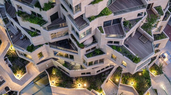 Μια «πράσινη κοιλάδα» ελίσσεται ανάμεσα στα τρία κτίρια, ξεκινώντας από το τέταρτο και πέμπτο επίπεδο, ενώ δύο εξωτερικές σκάλες παρέχουν δημόσια πρόσβαση σε αυτή την αστική όαση.