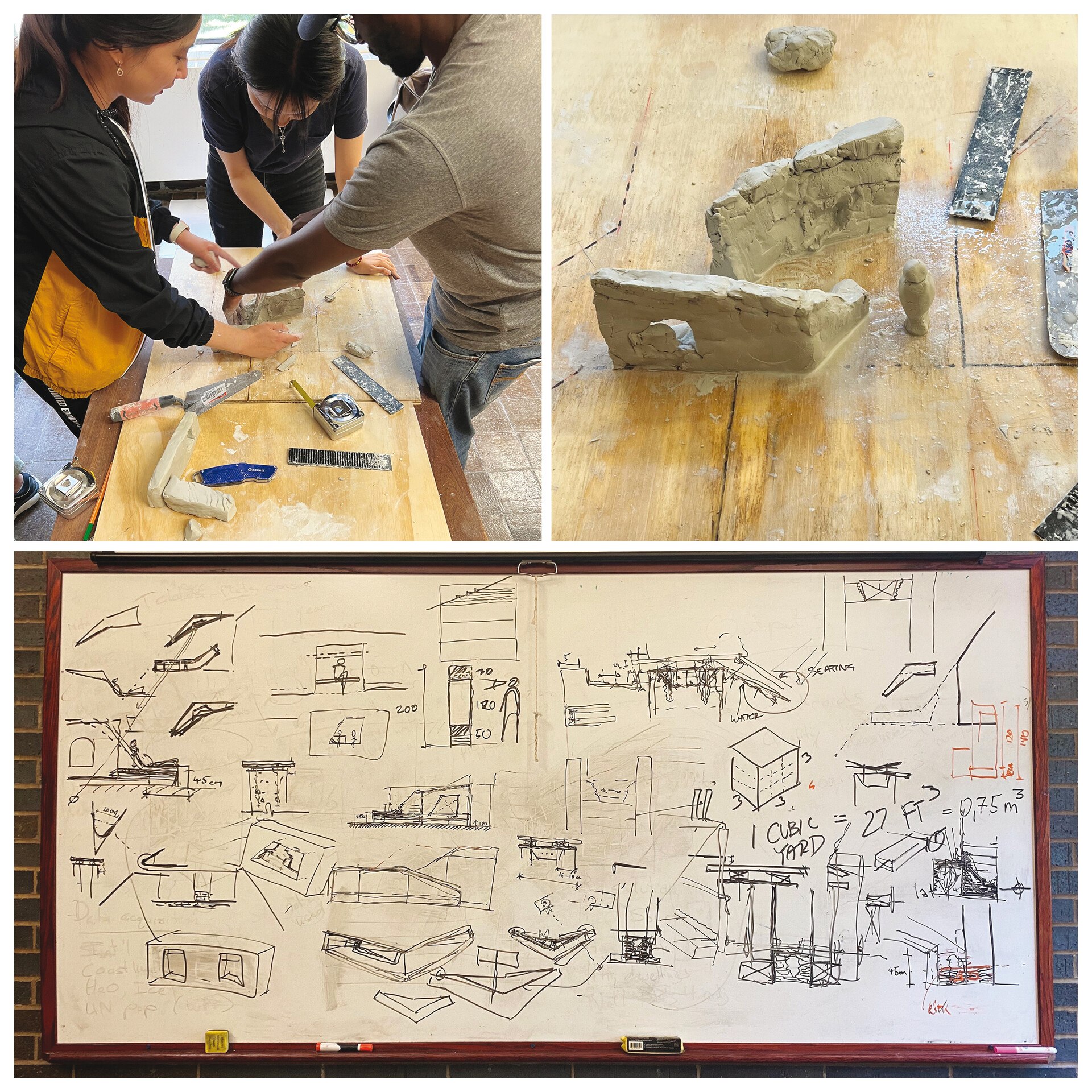 Άρχισαν να σχεδιάζουν την εγκατάσταση μέσω μιας άσκησης «claystorming», μιας συνεδρίας κατά την οποία διαμορφώνουν τον σκελετό με τα χέρια τους, χρησιμοποιώντας πηλό, ενώ σχεδιάζουν και συζητούν τις λεπτομέρειες της κατασκευής. Εξέτασαν την τυπική σύνθεση, την πρόσβαση στον χώρο, τις απαιτήσεις των ξυλοτύπων, την αλληλουχία της κατασκευής και τις λεπτομέρειες της ακατέργαστης γης για συνδέσεις και αρμούς σε θεμέλια, υπέρθυρα και γωνίες. Η διαδικασία σχεδιασμού πραγματοποιήθηκε μεταξύ της τάξης και του εργοταξίου και σκοπός της ήταν να συμβιβάσει τη σχεδιαστική πρόθεση με τις χωρικές πραγματικότητες και τις αντοχές που απαιτούνται για τη δημιουργία ενός άτυπου χώρου συγκέντρωσης σε μια πανεπιστημιούπολη.