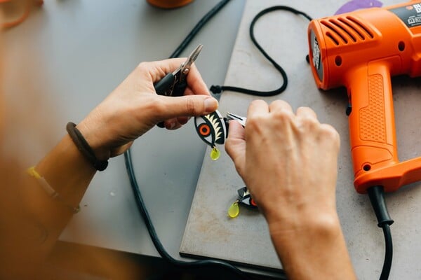 «Οι πολύχρωμες καρέκλες είναι στο πλαίσιο της δημιουργικής μου δουλειάς και τις έχω φτιάξει κάνοντας upcycling, χρησιμοποιώντας παλιά έπιπλα που είχα στην αποθήκη αλλά και κομμάτια από πλεξιγκλάς που μου έχουν μείνει από τα κοσμήματα. Προς το παρόν είναι μονταρισμένα με ταινία αλλά πρόκειται να βιδωθούν διότι εννοείται ότι τις θέλω για χρηστικά αντικείμενα».