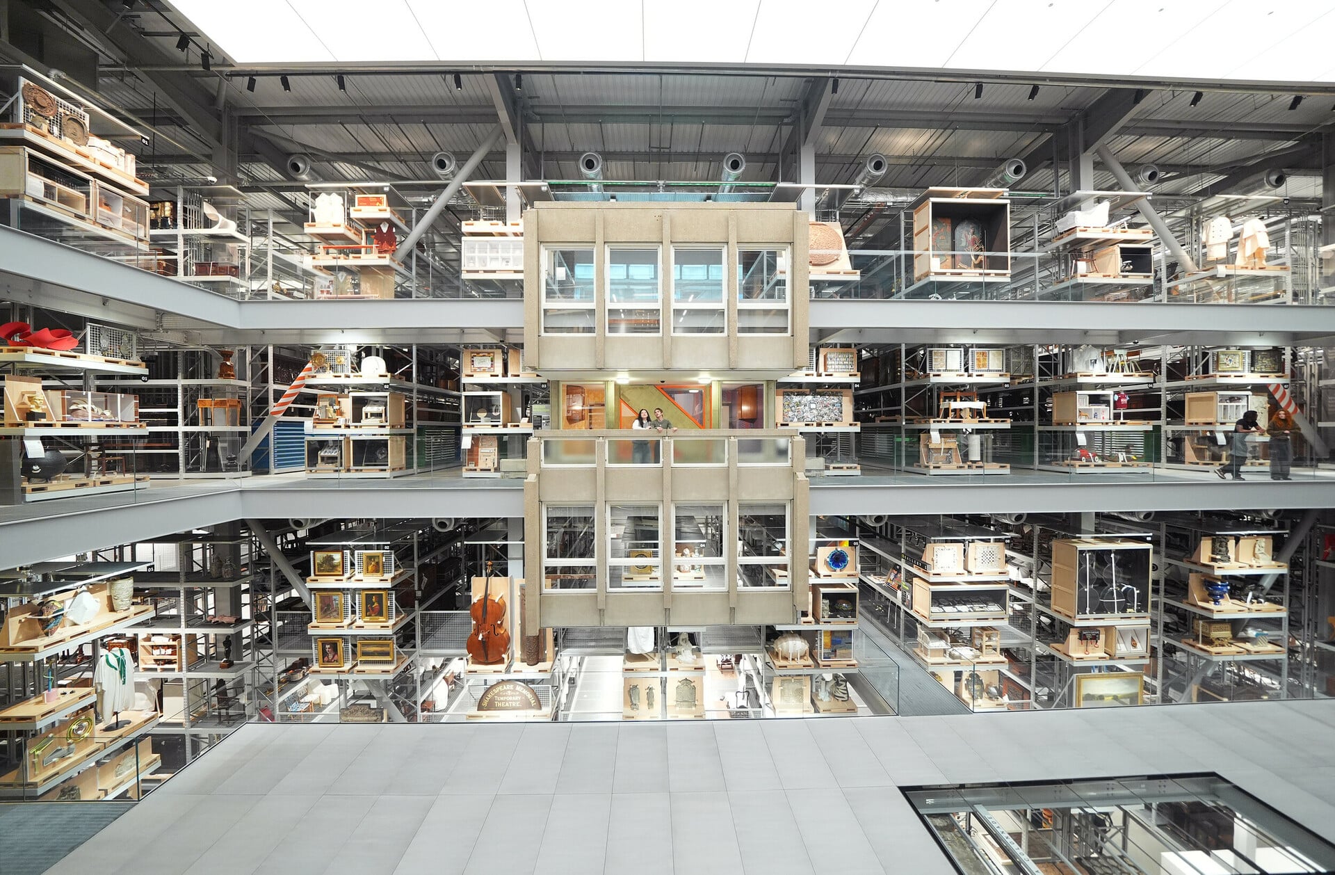 Η πρώτη εντύπωση είναι κάπως αποπροσανατολιστική. Δεν υπάρχει η γραμμική αφήγηση που συναντά κανείς σε ένα παραδοσιακό μουσείο, ούτε μια προκαθορισμένη «σωστή» διαδρομή. Αντιθέτως, εδώ κυριαρχεί η ελευθερία της ανακάλυψης. Στρέφεις το βλέμμα σου και αμέσως βρίσκεις κάτι απροσδόκητο: ένα κομμάτι θεατρικού σκηνικού δίπλα σε ένα εύθραυστο αντικείμενο καθημερινής χρήσης, ένα αρχείο που μοιάζει ασήμαντο μέχρι να ανακαλύψεις την ιστορία του. Έχεις μπροστά σου ένα οργανωμένο χάος, έναν συναρπαστικό συνδυασμό ετερόκλητων αντικειμένων: μια τηλεόραση της δεκαετίας του ’50, κούκλες βιτρίνας, ένα μεσαιωνικό γλυπτό, μια απλή καρέκλα, την εμβληματική Κουζίνα της Φρανκφούρτης, ένα άγαλμα του Βούδα ή ένα γιγάντιο γεωργιανό κουκλόσπιτο. Οι αριθμοί αποτυπώνουν το μέγεθος της συλλογής: 2.620 θεατρικά κοστούμια, 896 μαριονέτες, 2.770 πίνακες, 2.540 μεγάλων διαστάσεων τυπωμένα υφάσματα, 534 βραχιόλια, 1.118 δαχτυλίδια, 935 σκουλαρίκια, 282 κούπες, 361 μπλουζάκια και 72 ζευγάρια γυαλιά ηλίου.