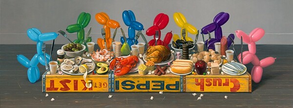Ο κόσμος του αμερικανού ζωγράφου κατοικείται από μπαλονένια ζωάκια, παιχνίδια, κέικ, τούρτες, μπισκότα, παγωτά, και φυσικά έντονα χρώματα.