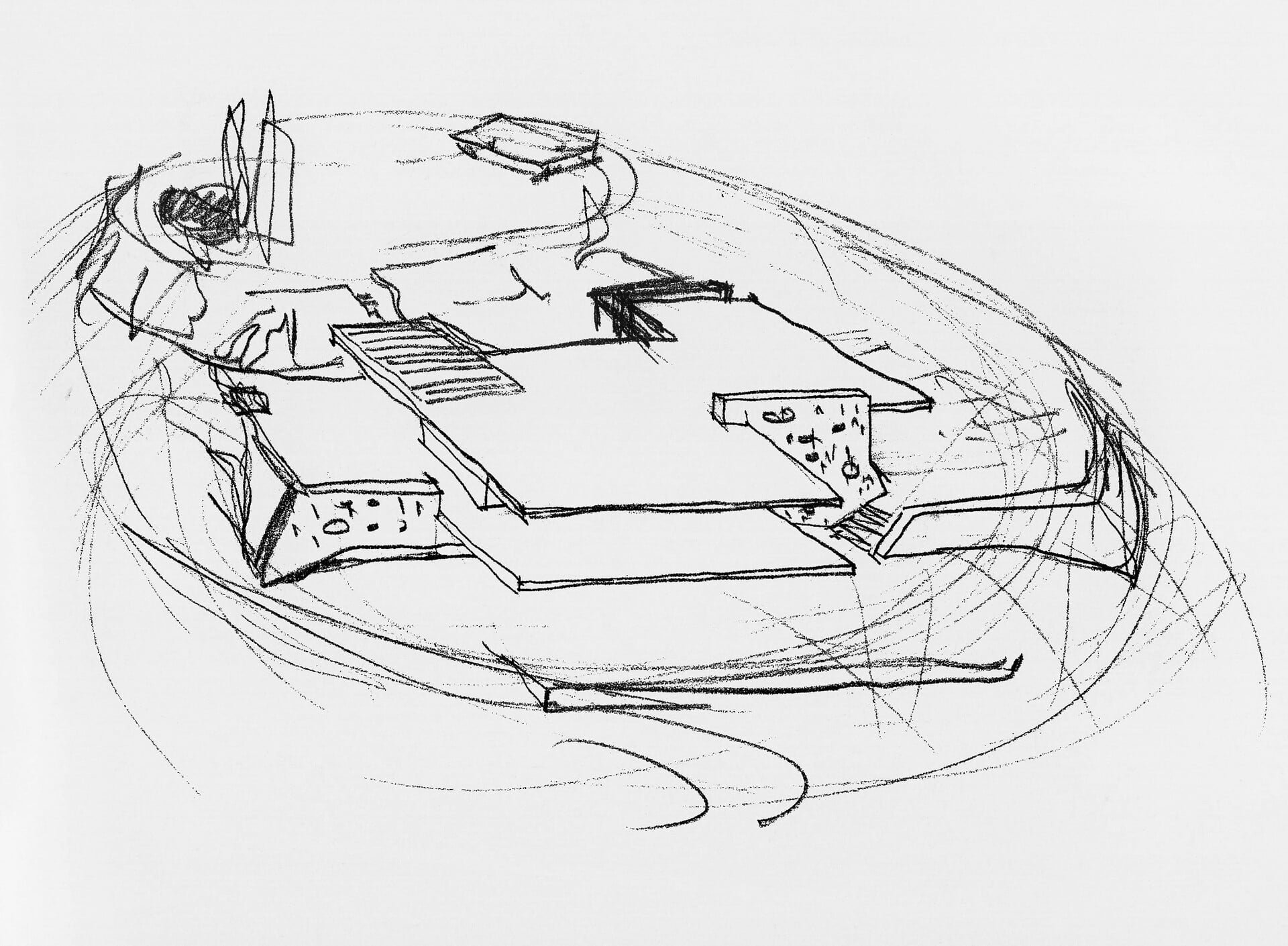 «Ακόμη και αυτά τα δύο εκκλησάκια στο σχέδιο που βλέπεις», μου λέει, «ήταν έμπνευση από το βιβλίο του Ρόμπερτ Μακέιμπ. Όπως και οι δύο φίλοι που κάθονται στην πεζούλα, προέρχονται από φωτογραφία του». Για τον Βαλσαμάκη, η αρχιτεκτονική δεν γεννιέται ποτέ σε ένα κενό αέρος. Ένα φωτογραφικό στιγμιότυπο, μια λεπτομέρεια τοπίου, μια ανθρώπινη στάση μπορούν να μετατραπούν σε αρχιτεκτονική μορφή. Έπειτα, με ένα μειδίαμα που προαναγγέλλει ότι ακολουθεί αφήγηση, περνά στη Μύκονο. «Έχει ιδιαίτερη σημασία η ιδιαιτερότητά της μέσα στην ιστορία», αναφέρει αστειευόμενος. «Σε αντίθεση με άλλα νησιά, όπου οι οικισμοί χτίζονταν ψηλά από φόβο για τους πειρατές, στη Μύκονο οι ίδιοι οι κάτοικοι ήταν πειρατές». Σταματά για μια στιγμή, απολαμβάνοντας την αντίδραση, και συνεχίζει: «Έχτιζαν πάνω στο κύμα, όπως στη Μικρή Βενετία, για να ξεφορτώνουν κατευθείαν τα λάφυρα στα σπίτια τους». Εκεί αντιλαμβάνεσαι τη γοητεία που του ασκεί ο τρόπος με τον οποίο η ιστορία, ο μύθος και η ανάγκη εγγράφονται στον συλλογικό χώρο. Για εκείνον, κάθε τόπος κουβαλά μια λογική που ξεπερνά την αισθητική του εικόνα, έναν χαρακτήρα που πρέπει πρώτα να αφουγκραστείς, προτού επιχειρήσεις να τον σχεδιάσεις.