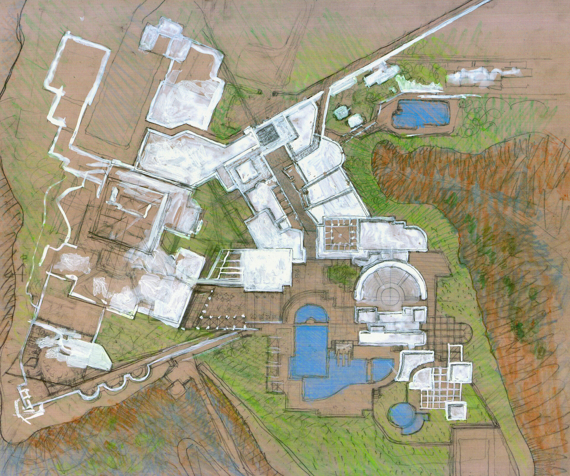 Λίγο αργότερα φέρνει να μας δείξει όλες τις μακέτες που αφορούν το μεγάλο πρότζεκτ που ετοιμάζει εδώ και πολύ καιρό στη Μύκονο και εξηγεί τη δυσκολία να παντρέψεις τη διεθνή πολυτέλεια με την τοπική ταυτότητα. Πρόκειται για το νέο Four Seasons, ένα έργο μεγάλης κλίμακας, το οποίο όμως δεν αντιμετωπίζει ως ένα τυπικό ξενοδοχείο, αλλά ως ένα παραδοσιακό χωριό. «Πρέπει να έχεις όλες τις προδιαγραφές του Hilton, αλλά χωρίς να είναι Hilton», λέει και μου εξηγεί ότι ο προβληματισμός του ήταν ο εξής: «Πώς θα το κάνω μυκονιάτικο και να δουλεύει για Αμερικάνους;». Κάπως έτσι εξιστορεί τη φιλοσοφία που ακολούθησε για να δημιουργήσει ένα «χωριό» σε ένα νησί που υπεραγαπά. Και αναφέρει: «Το Four Seasons στη Μύκονο σχεδιάστηκε με τη λογική της διάσπασης του όγκου σε μικρά “σπιτάκια”, ακολουθώντας την κλίμακα του νησιού. Ουσιαστικά, ήθελα να ικανοποιηθούν οι απαιτήσεις ενός πολυτελούς θέρετρου χωρίς να χαθεί η αίσθηση του οικισμού. Το σχεδίασα στην αρχή πάνω σε μια χαρτοπετσέτα, κάποια στιγμή που ήμουν στο καφενείο», θυμάται. Και προσθέτει: «Στο κέντρο του οικισμού τοποθέτησα την “πλατεία”, το δημαρχείο (ρεσεψιόν), το καφενείο και την εκκλησία. Αυτή η ιεραρχική διάταξη, ο Θεός, η εξουσία και ο λαός, είναι μια παγκόσμια συνταγή για κάθε πετυχημένη κοινωνική δομή, από την Ιταλία μέχρι την Ύδρα». Ιδιαίτερη έμφαση δόθηκε στη θέα, με μια έξυπνη τομή στο έδαφος ώστε όλα τα δωμάτια, ακόμα και τα ισόγεια, να έχουν οπτική επαφή με τη θάλασσα.
