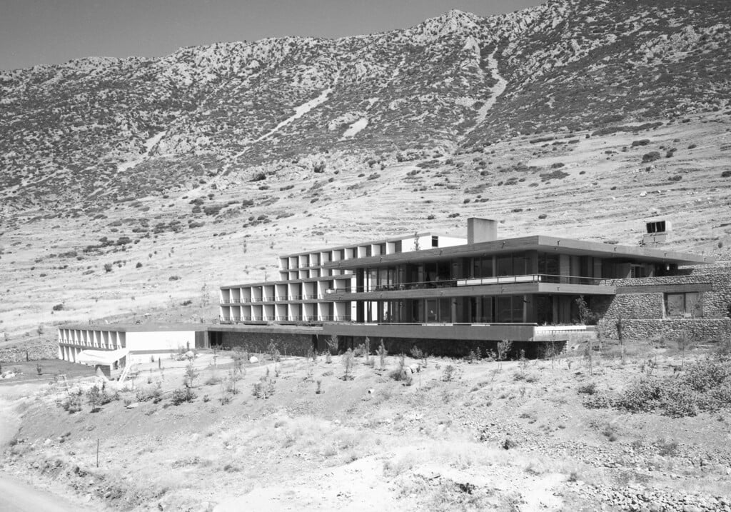 Η αφήγησή του δεν μένει στην επιχειρηματική επιτυχία, επιστρέφει αμέσως στην αρχιτεκτονική ουσία. «Τότε όλοι αντέγραφαν τα “Ξενία” του Κωνσταντινίδη και τον Πικιώνη. Εγώ δεν ανήκα σε αυτούς», σημειώνει με ήρεμη βεβαιότητα. Αντί για μίμηση, επέλεξε τη ρήξη με τα δεδομένα της εποχής. Για πρώτη φορά χρησιμοποιήθηκαν αλουμίνιο και μαρμάρινες προσόψεις με τόσο σύγχρονο τρόπο, ενώ οι εσωτερικοί χώροι οργανώθηκαν γύρω από μια νέα αισθητική λιτότητας και λειτουργικότητας. «Επιβάλαμε τον μοντερνισμό», λέει. Ανεπίχριστο μπετόν, δάπεδα από πλάκες Πηλίου, ένα τζάκι τοποθετημένο στο κέντρο του σαλονιού – στοιχεία που τότε δήλωναν μια αλλαγή εποχής.