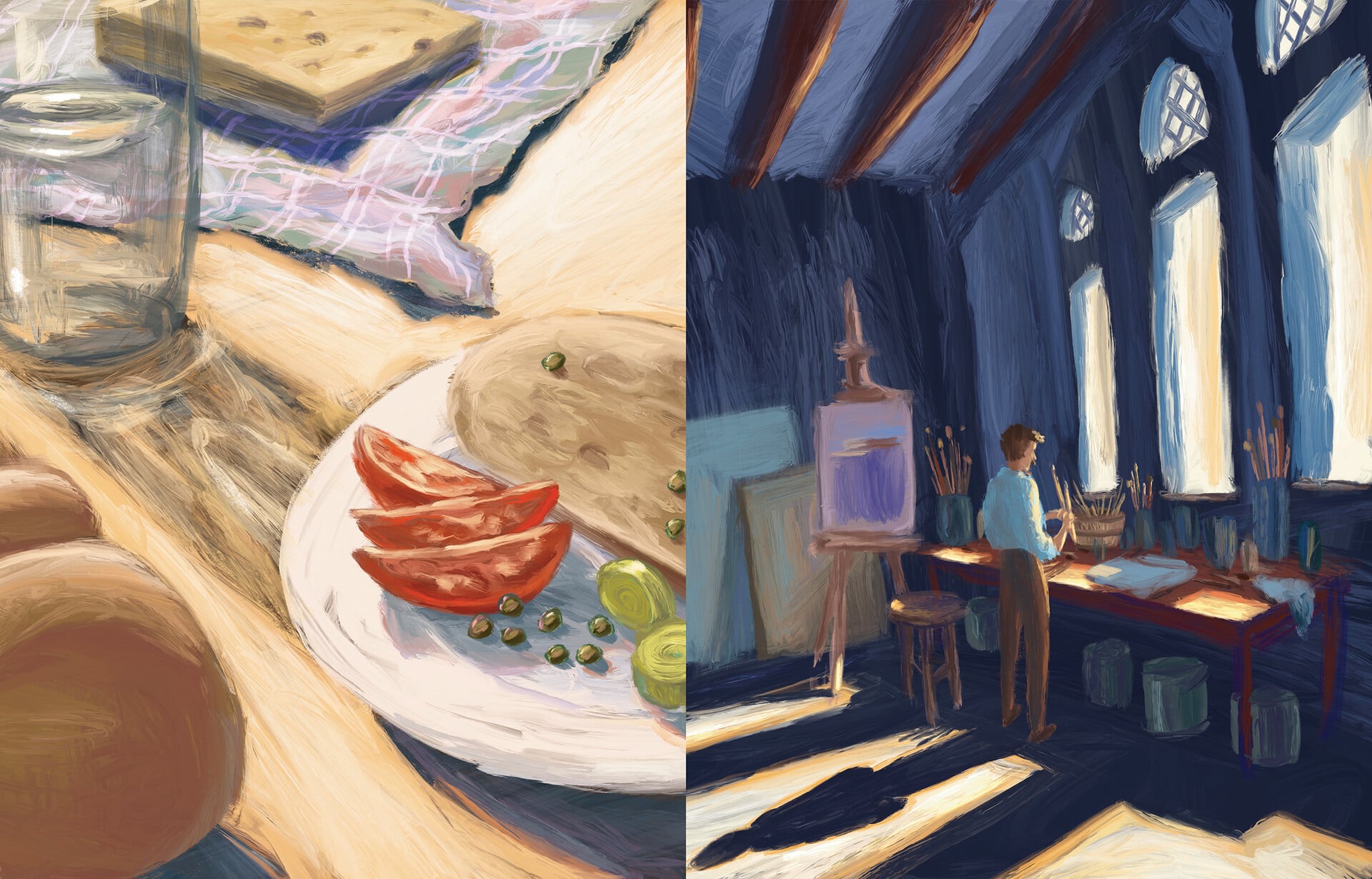 Αυτό συμβαίνει γιατί έτσι λειτουργώ όταν έρχεται στα χέρια μου ένα κείμενο για να το εικονογραφήσω, και μετά ένα άλλο. Τα αντιμετωπίζω ως διαφορετικά πράγματα, οπότε αποφασίζω ότι θα ασχοληθώ με άλλο τρόπο με κάθε νέα ιστορία.