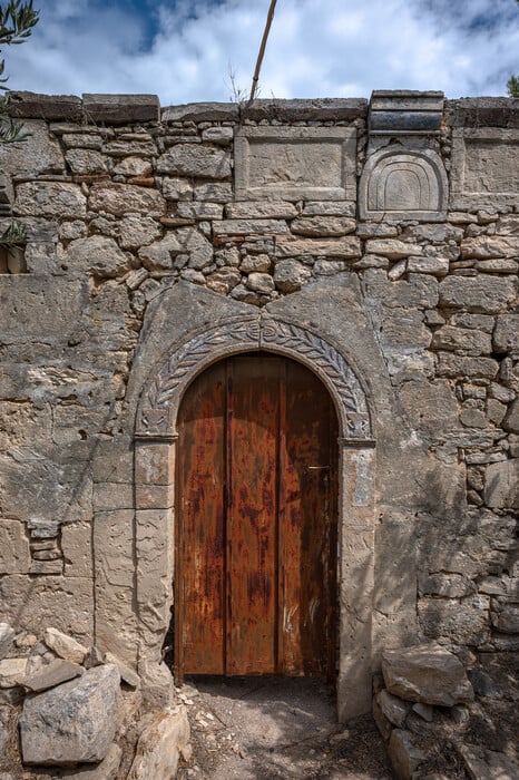 Ο γεννημένος το 1854 Ροδάκης σκάλισε σε πέτρα με τα χέρια του τα σύμβολα του σπιτιού, τους προστάτες του, Τούρκους πολεμιστές, δυο κεφάλια που κοιτάνε το ένα στην Ανατολή και το άλλο στη Δύση, τον αετό που συμβολίζει τη δύναμη, το ρολόι για τον χρόνο, τον χοίρο για την καλοτυχία και το φίδι για τη γνώση, ζωγράφισε παγώνια και άνθη πάνω από το τζάκι, μια ανάγλυφη βάρκα πάνω από την πόρτα, διακόσμησε με ανάγλυφα κλωνάρια και ανθισμένα κλαδιά τα ημικυκλικά πλαίσια ανοιγμάτων του σπιτιού και σκάλισε τις παλάμες του στο τζάκι του φουρνόσπιτου. Έγραψε στον τοίχο του πατητηριού «Καλήτερα ο Άνθροπος Να ήτον κρία πέτρα Παρά πού έχη στόχαξη Κε φρόνησης κε Μέτρα. Έμαθα να ζω ΑΧ 1891 ΒΑΧ».