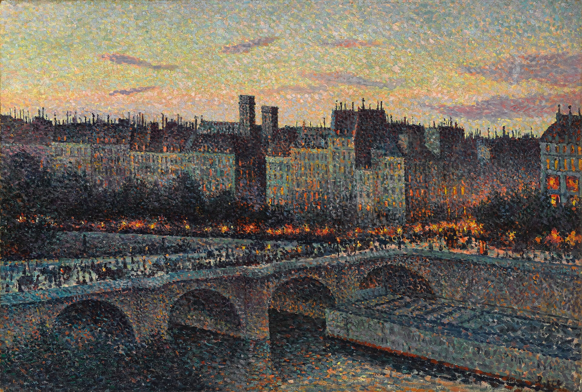 Ο Λους είναι ένας νεοϊμπρεσιονιστής άγνωστος σχετικά στην Ελλάδα, ένας καλλιτέχνης απρόσμενος, μια ωραία φιγούρα που, σε αντίθεση με το γκρουπ των νεοϊμπρεσιονιστών, δεν είναι από πλούσια οικογένεια, δεν μπορεί να ζήσει παρά μόνο με τη δουλειά του και τη ζωγραφική του και τον ενδιαφέρει πολύ να βάλει την καθημερινότητα στα έργα του, είτε με αστικά τοπία είτε με τη ζωή των απλών ανθρώπων. Εδώ, του αρέσει η νυχτερινή ατμόσφαιρα, μπορεί να παίξει με τα φώτα, και μας παραδίδει μια απίθανη θέα του Παρισιού, με πολύ κόσμο να περπατά στην Pont Neuf, δίνοντας την αίσθηση μιας πόλης που ζει πραγματικά. Αυτό που έχει ενδιαφέρον είναι ότι το αστικό τοπίο που βλέπουμε εδώ δεν υπάρχει πια, γιατί στη θέση αυτών των κτιρίων στη μέση του πίνακα είναι σήμερα το εμπορικό κέντρο της Σαμαριτέν. Και αυτό που έχει επίσης πολύ ενδιαφέρον είναι ότι ο πρώτος ιδιοκτήτης του έργου ήταν ο αρχιτέκτονας του Σαμαριτέν, Φραντς Ζουρντέν, ο οποίος αγόρασε αυτό το έργο προφανώς γιατί ήξερε ότι αυτό το τοπίο θα εξαφανιζόταν.
