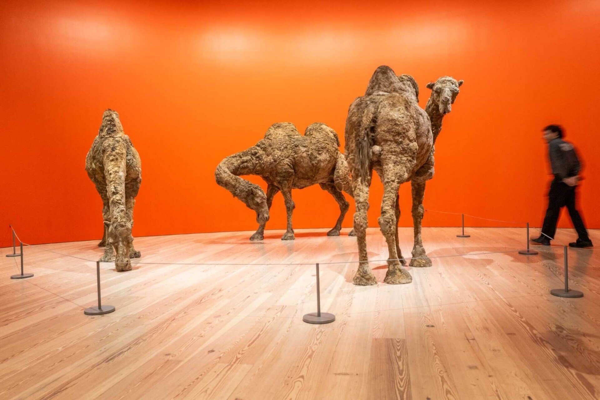 Η έκθεση «Sixties Surreal» ανοίγει με μια εγκατάσταση τριών γλυπτών της Νάνσι Γκρέιβς -που απεικονίζουν καμήλες σε φυσικό μέγεθος-, η οποία εκτέθηκε για πρώτη φορά το 1969. Φωτ.: Μουσείο Αμερικανικής Τέχνης Γουίτνεϊ, Nέα Υόρκη.