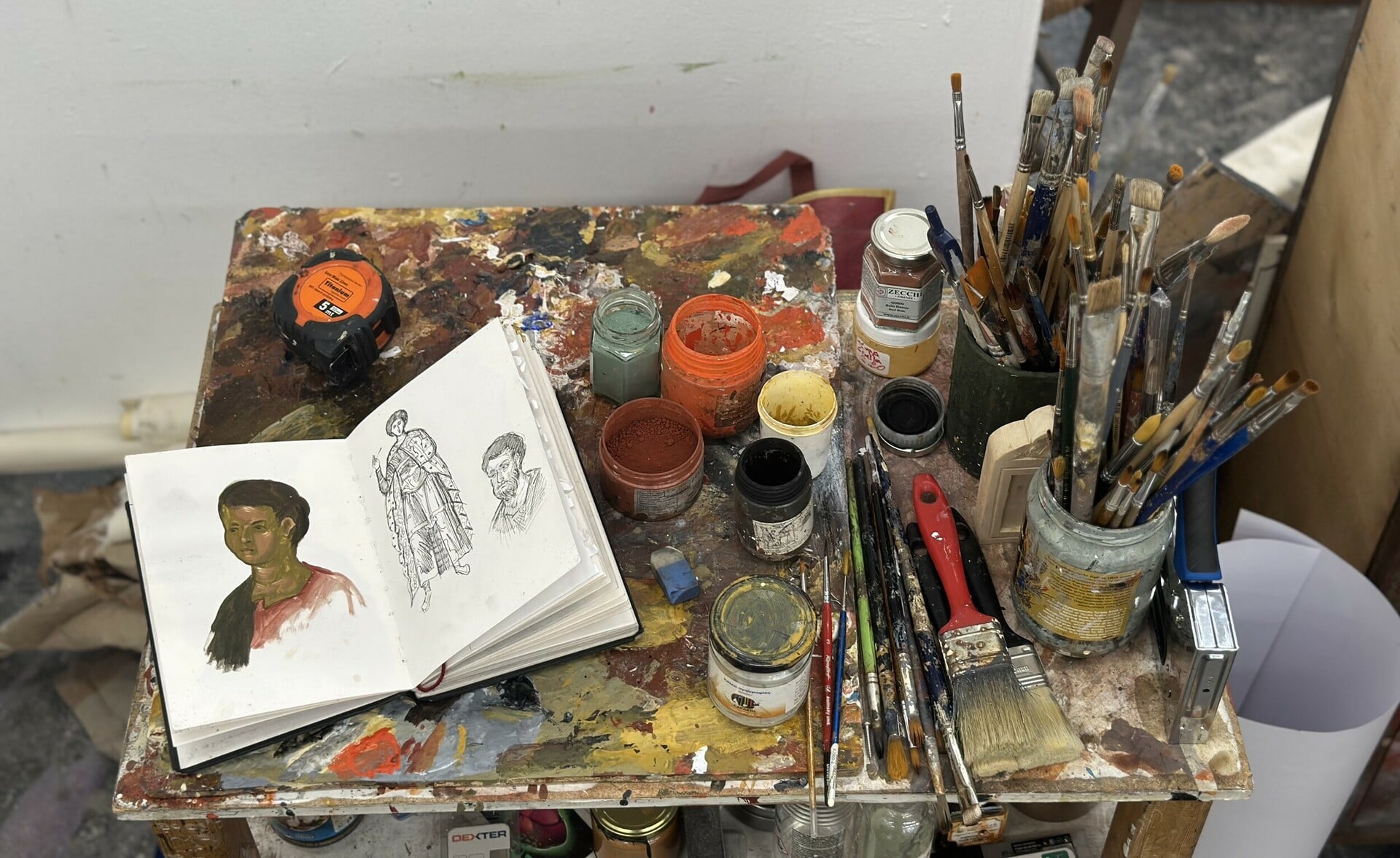 «Θέλω να είμαι ένας ζωγράφος που, μεταξύ άλλων, ασχολείται με την αγιογραφία», λέει. Σε αυτή την απλή φράση κρύβεται μια ολόκληρη κοσμοθεωρία: η άρνηση της ταμπέλας, η επιθυμία για ελευθερία, η ανάγκη για αναζήτηση.