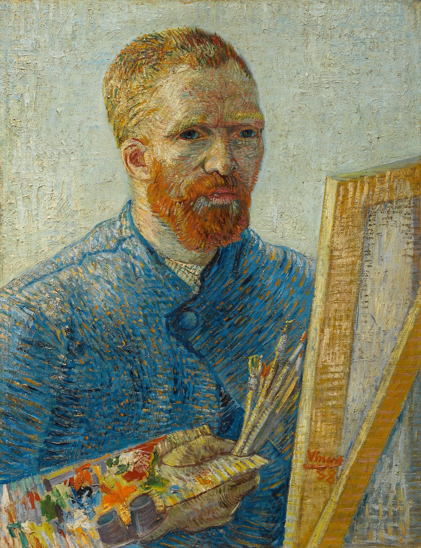 Ένα άλλο σπουδαίο έργο του ανάμεσα στις αυτοπροσωπογραφίες, το Self-portrait as a Painter του 1888, το τελευταίο από τα πορτρέτα του στο Παρίσι, διαφημίζει τις δεξιότητες που είχε αποκτήσει κατά τη διάρκεια των δύο ετών του στη γαλλική πρωτεύουσα, με τα κόκκινα μαλλιά του να έρχονται σε αντίθεση με τα μπλε ρούχα του.