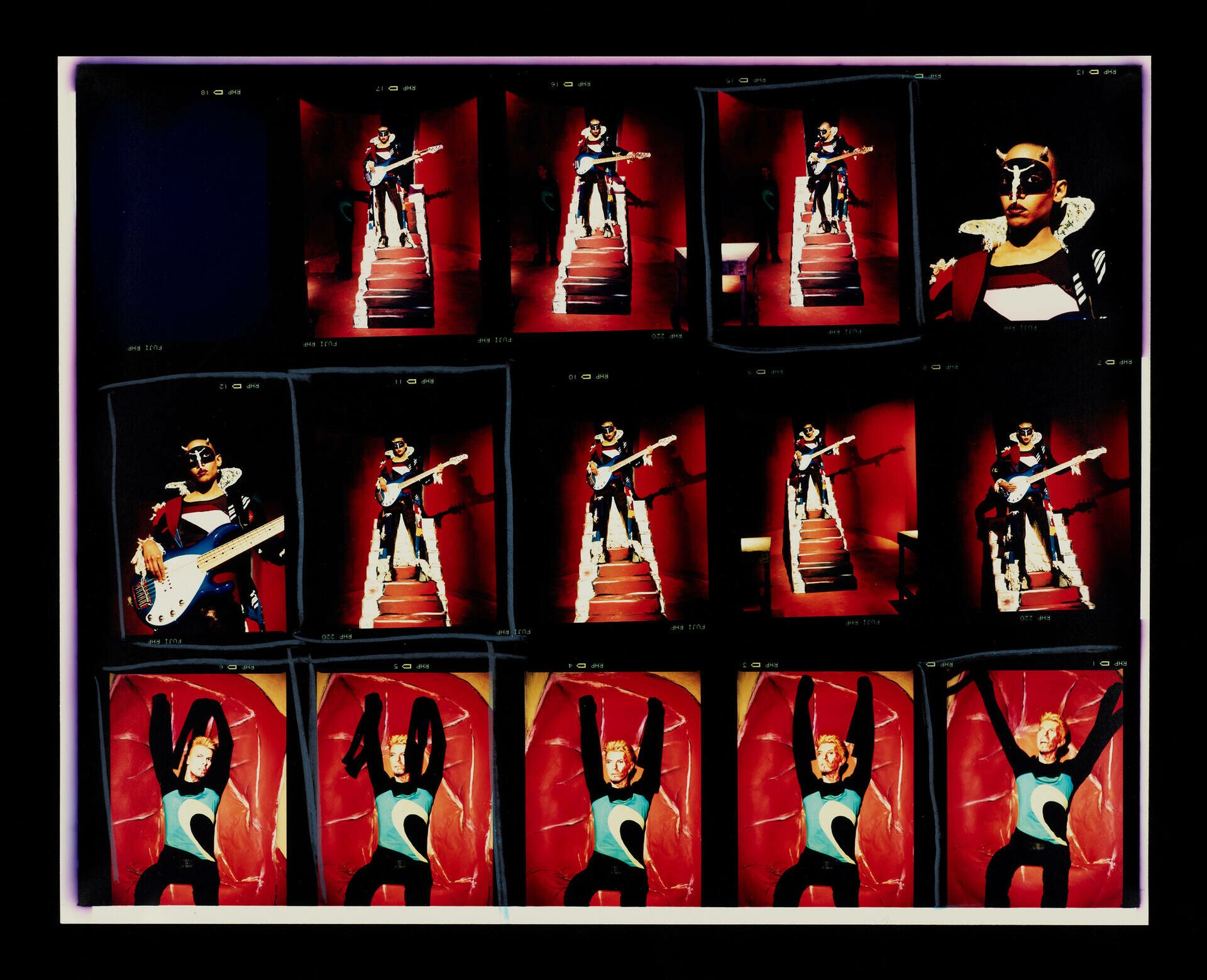 FacebookTwitter Ο David Bowie ως Ziggy Stardust, φορώντας ασύμμετρη στολή σχεδιασμένη από τον Kansai Yamamoto, 1973. Φωτ.: Mick Rock FacebookTwitter Ο Bowie βάζει μακιγιάζ ως Ziggy Stardust, 1973. Φωτ.: Mick Rock FacebookTwitter Φύλλο contact της ηχογράφησης για το μουσικό βίντεο «Dead Man Walking» από το άλμπουμ «Earthling» του David Bowie, σε σκηνοθεσία Floria Sigismondi, 1997