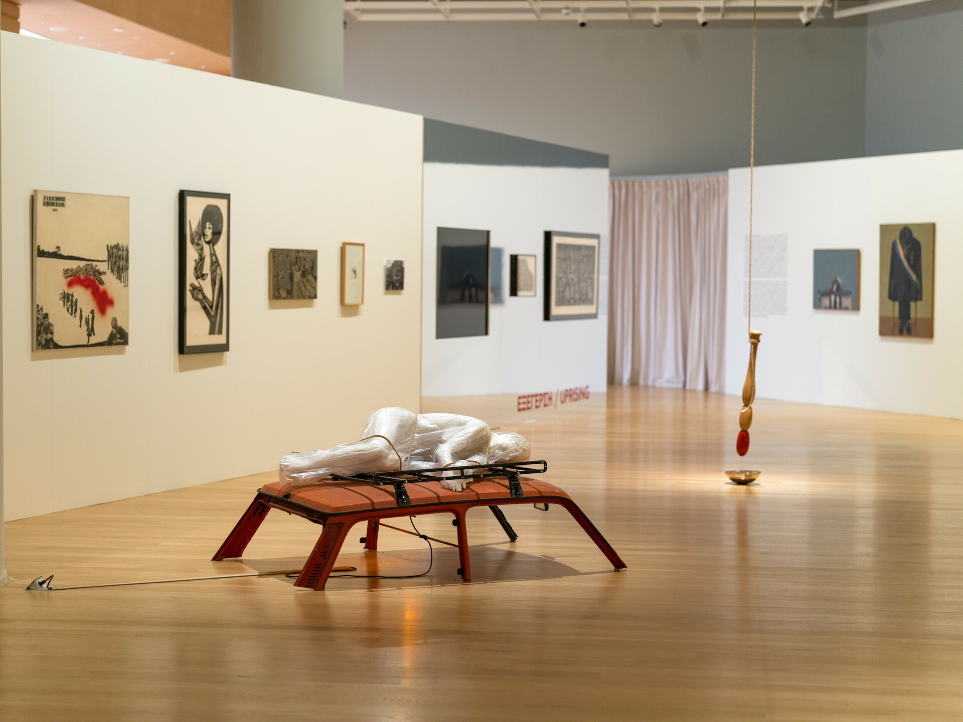 Την αντίσταση ακολουθεί η «Εξέγερση», που στην Ελλάδα συνδέεται κυρίως με αυτήν του Πολυτεχνείου. Οι εικαστικοί, με πλήθος και ποικιλία ερμηνειών, το επιβεβαιώνουν, όπως η πολυεπίπεδη αφηγηματική σύνθεση του Μάριου Βατζιά, οι στολές στρατιωτικών του Λεωνίδα Κανακάκη, το μνημειακό γλυπτό του Μανώλη Τζομπανάκη, ο «Αρχάγγελος» του Σικελιώτη, ενώ σε μια περιοχή της ενότητας παρουσιάζεται η ιστορική έκθεση «Alternativa Zero» που οργανώνει ο Ernesto de Sousa στην Πορτογαλία το 1977, με στόχο να προβάλει τον πλούτο των πειραματικών τάσεων της σύγχρονης πορτογαλικής τέχνης. Ο Κυριάκος Κατζουράκης κάνει μια αναφορά στον Τσε Γκεβάρα, με τρία έργα ο Πάρις Πρέκας στην Κύπρο, ενώ η Βάσω Κυριάκη στο «Βιετνάμ» και ο Τάσσος στην «Άντζελα Ντέιβις» συνδέουν τα διεθνή κινήματα και τις εξεγέρσεις με την ελληνική εμπειρία.