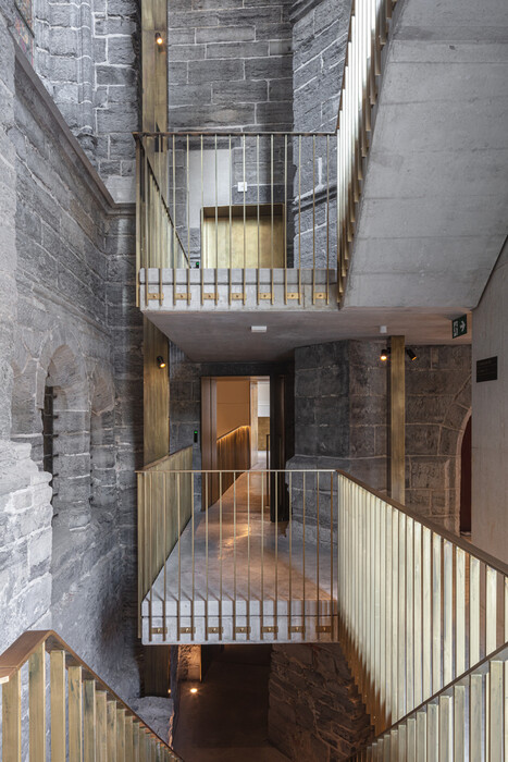 Χρησιμοποιήθηκαν ξύλινα και ορειχάλκινα στοιχεία για λόγους αρμονίας με τα προϋπάρχοντα υλικά και οι διάφοροι χώροι συνδέθηκαν μεταξύ τους ενσωματώνοντας μια επαναλαμβανόμενη, ξεκάθαρη αρχιτεκτονική, που χαρακτηρίζεται από την απλότητα στη λεπτομέρεια και την απόλυτα ομοιογενή επιλογή υλικών. Στις στηρίξεις επιλέχθηκε να χρησιμοποιηθεί σκυρόδεμα που είναι ουδέτερο, δεν κυριαρχεί ποτέ αλλά πάντα στηρίζει τις ανόμοιες περιοχές, με το απαλό γκρι του σκυροδέματος να κρατά την προσοχή του επισκέπτη στα φυσικά πέτρινα στοιχεία του καθεδρικού ναού πριν φτάσει στο υποβλητικό πολύπτυχο, το μόνο και κυρίαρχο στοιχείο με πλούσια χρώματα.