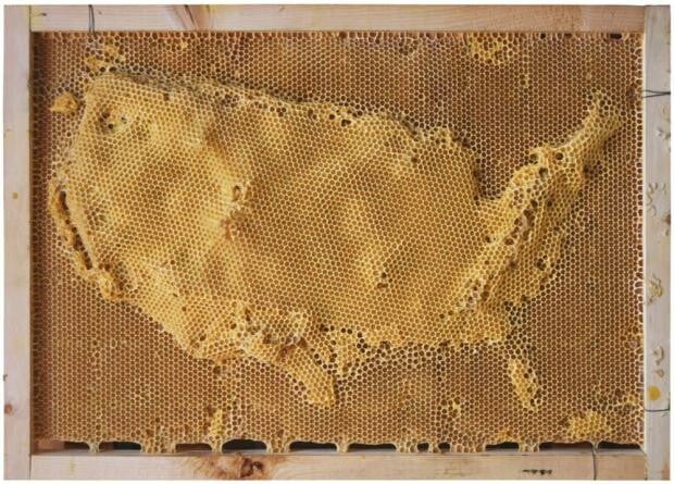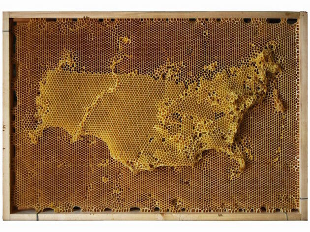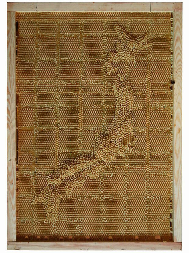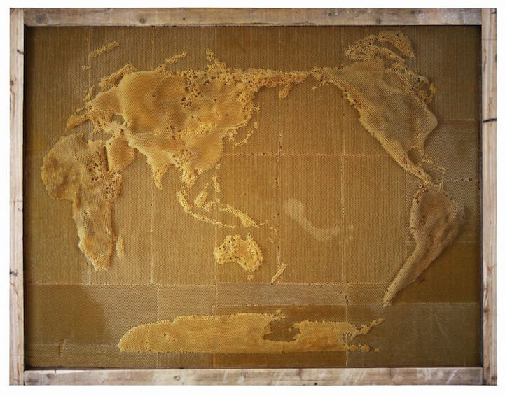 Ο Kινέζος καλλιτέχνης Ren Ri δημιουργεί έργα τέχνης με συνεργό του την ίδια την φύση. Στο συγκεκριμένο έργο του, ο Ren Ri δημιούργησε γεωγραφικές τοποθεσίες σε κλίμακα, με την βοήθεια μελισσιών. Προκειμένου να πετύχει τον σκοπό του ο καλλιτέχνης κατασκεύασε τα μεταλλικά και τα ξύλινα κάδρα και σε αυτά άρχισε να μετακινεί την βασίλισσα ενός μελισσιού σε διάφορα σημεία. Όπου άφηνε την βασίλισσα αυτή απελευθέρωνε φερομόνες οι οποίες με την σειρά τους θα μεταφράζονταν από τις μέλισσες εργάτριες ως εντολή να χτίσουν κηρήθρες στο συγκεκριμένο σημείο. Με την μέλισσα βασίλισσα, λοιπόν για γραφίδα του, ο Ren Ri, "ζωγράφισε" ολόκληρη την υδρόγειο καθώς και μεμονωμένα κράτη.
