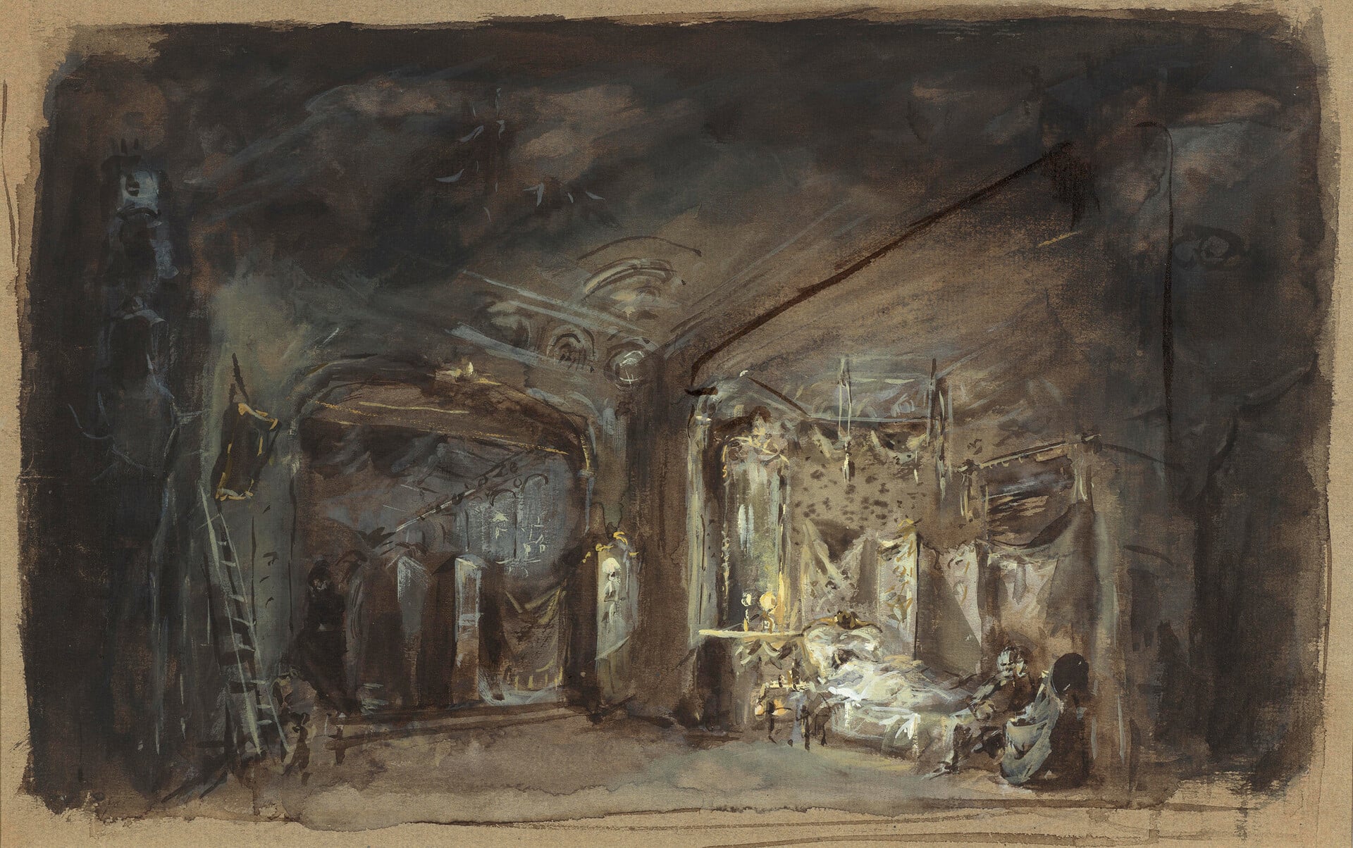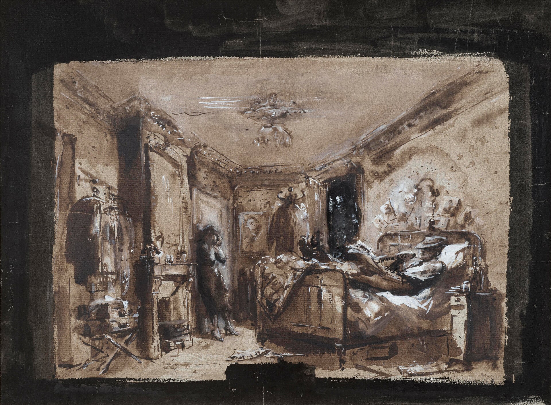 «Το υπνοδωμάτιο της Βιολέτας Βαλερί», Γ' Πράξη. Γκουάς σε χαρτί, 25x40 εκ. Προέλευση: Συλλογή Jean-Marie Simon