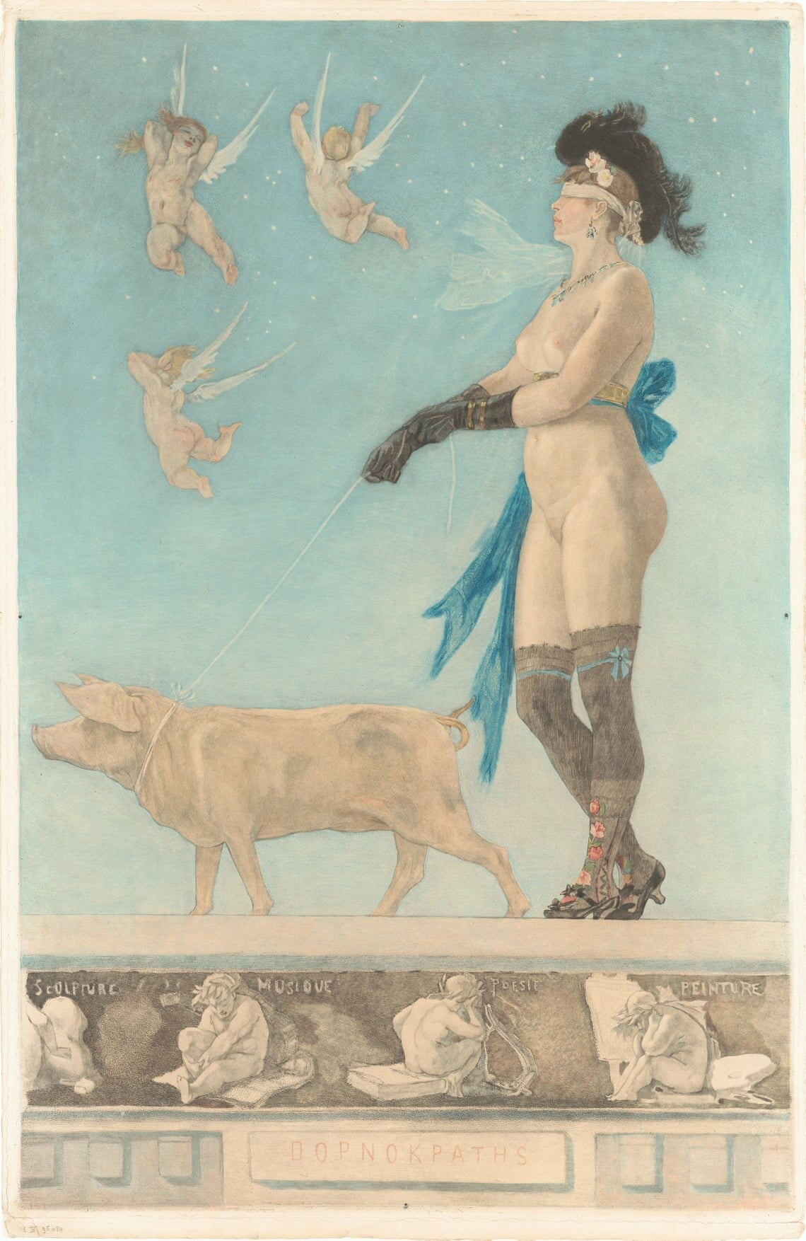 Κατά τη διάρκεια μιας αποπνικτικά ζεστής εβδομάδας στο Παρίσι το 1878, ο μποέμ Βέλγος καλλιτέχνης Φελισιέν Ροπς ζωγράφισε έναν πίνακα που απεικονίζει μια γυναίκα ναπερπατάει με το γουρουνάκι της. Η γυναίκα απεικονίζεται με δεμένα μάτια και γυμνή –φορώντας μόνο καλσόν, μακριά μαύρα γάντια και ένα καπέλο με φτερά– και το γουρουνάκι έχει μια χαριτωμένη ροζ σγουρή ουρά. Το έργο, το οποίο ονομάστηκε «Pornocratès» («Πορνοκράτης»), μένει χαραγμένο στο μυαλό. Μόλις το δει κανείς, είναι δύσκολο να το ξεχάσει.
