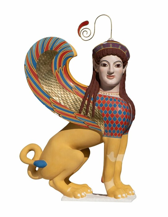 Η νέα ανακατασκευή του πτερυγίου της Σφίγγας της αρχαϊκής περιόδου του The Met –που κάποτε στεφάνωσε μια επιτύμβια στήλη της συλλογής του μουσείου– δημιουργήθηκε ειδικά για την έκθεση από τον Dr. Brinkmann και την ομάδα του σε συνεργασία με τα Τμήματα Ελληνικής και Ρωμαϊκής Τέχνης, Συντήρησης Αντικειμένων, Επιστημονικής Έρευνας και Απεικόνισης του The Met. Παράχθηκαν επίσης τρισδιάστατες ψηφιακές αποδόσεις τόσο του πρωτότυπου έργου όσο και της ανακατασκευής, οι οποίες θα χρησιμοποιηθούν για την εμπειρία της πολυχρωμίας της Σφίγγας μέσω της επαυξημένης πραγματικότητας.