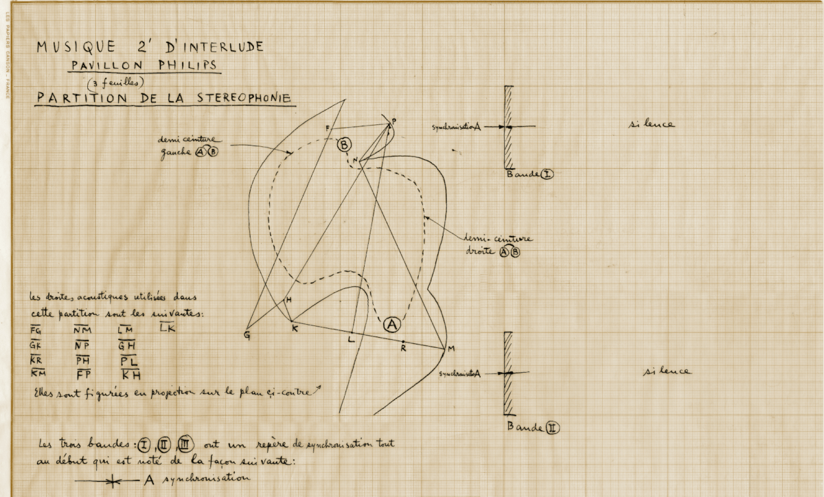 Το «Concret PH» δημιουργήθηκε αρχικά για το μοντερνιστικό Philips Pavilion (περίπτερο) της Παγκόσμιας Έκθεσης των Βρυξελλών του 1958 (Expo 58). Η Philips ανέθεσε το περίπτερο στο γραφείο του Le Corbusier, για να στεγάσει ένα πολυμεσικό θέαμα που τιμούσε τη μεταπολεμική τεχνολογική πρόοδο. Επειδή ο Le Corbusier ήταν απασχολημένος με τον σχεδιασμό της πόλης Chandigarh, μεγάλο μέρος της διαχείρισης του έργου ανατέθηκε στον Xenakis, ο οποίος ήταν πειραματικός συνθέτης και επηρεάστηκε στον σχεδιασμό από τη σύνθεσή του «Metastaseis». To «Concret PH» ακουγόταν όταν το κοινό έμπαινε και έβγαινε από το κτίριο, ενώ μέσα στο περίπτερο ακουγόταν το «Poème électronique» του Edgard Varèse. Το κομμάτι έχει διάρκεια περίπου 2,5 λεπτά και εστιάζει κυρίως στην ηχητική πυκνότητα. Στο Philips Pavilion, το έργο ακουγόταν από 425 ηχεία, μέσω ενός ηχητικού συστήματος 11 καναλιών.