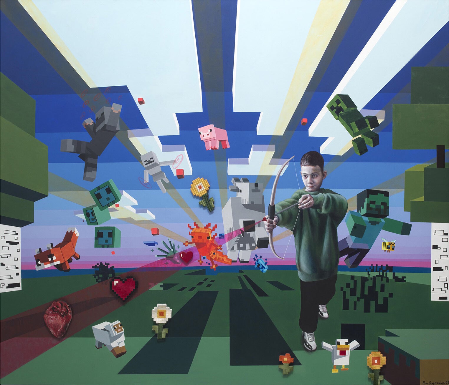 Τα έργα της Βίκυς Γεωργιοπούλου διερευνούν την εύθραυστη ισορροπία ανάμεσα στην προσωπική εμπειρία και στις κοινωνικές και πολιτικές συνθήκες που τη διαμορφώνουν. Σε έναν κόσμο που μοιάζει ολοένα πιο δυστοπικός, η ανθρώπινη ύπαρξη αποκαλύπτεται εκτεθειμένη, ευάλωτη και συχνά βαθιά μόνη. Οι μορφές που εμφανίζονται στους πίνακές της κουβαλούν τα σημάδια της εποχής τους. Ο πόλεμος, η βία, η πείνα και η αναγκαστική μετανάστευση λειτουργούν ως αόρατες δυνάμεις που διαπερνούν τα σώματα και τις ιστορίες τους. Παιδιά και ηλικιωμένοι, οι πιο ευάλωτες ηλικιακές ομάδες, εμφανίζονται παγιδευμένοι ανάμεσα στην ανάγκη για προστασία και στην αδιαφορία ενός κόσμου που κινείται με ταχύτητα και σκληρότητα.