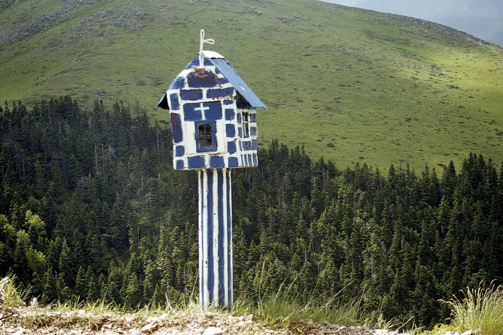 Το φωτογραφικό έργο της Φωτοπούλου προσεγγίζει τα εικονοστάσια ως μεταβατικούς τόπους μνήμης, όπου η πίστη, το πένθος και η φθορά συνυφαίνονται με το ελληνικό τοπίο. Στη δική της πρώτη ενότητα, τα εικονοστάσια προσεγγίζονται μέσα από την εξωτερική τους όψη και τη σχέση τους με το περιβάλλον. Οι εικόνες ανοίγουν ένα παράθυρο στο τοπίο, αναδεικνύοντας τον τρόπο με τον οποίο εντάσσονται σε αυτό, ενώ ταυτόχρονα το σημαδεύουν, μετατρέποντάς το σε τόπο μνήμης. Στη δεύτερη ενότητα, η θέαση μετατοπίζεται προς το εσωτερικό τους, με το βλέμμα να εισέρχεται στο σκοτεινό κέλυφος της κατασκευής, σε έναν μυστηριακό χώρο όπου το πέρασμα του χρόνου συμπυκνώνεται και η μνήμη άλλοτε επιμένει και άλλοτε εξασθενεί.