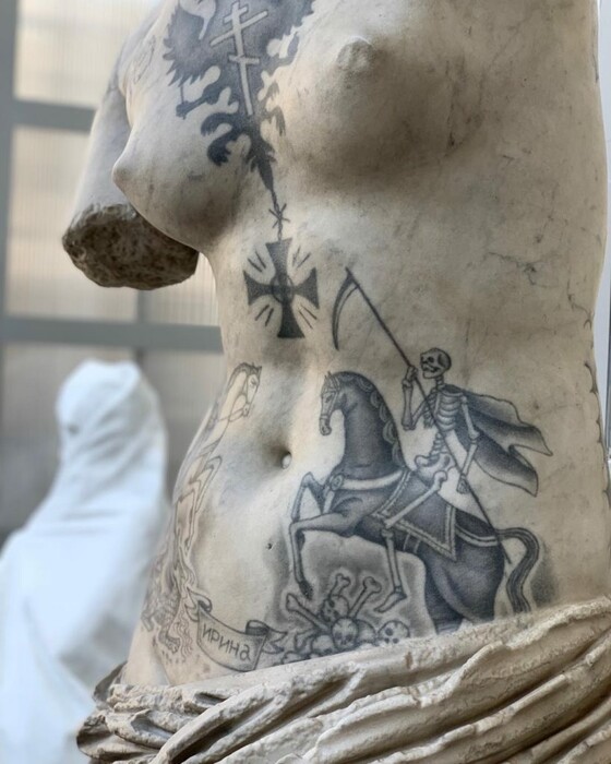 Το κύριο χαρακτηριστικό στα μαρμάρινα γλυπτά του με τα τατουάζ είναι ότι δεν είναι χρωματισμένα επιφανειακά –δεν τα βάφει δηλαδή απλώς εξωτερικά–, αντιθέτως το μελάνι εισχωρεί στο μάρμαρο με ένα παρόμοιο τρόπο με τον οποίο τα τατουάζ διαπερνούν το ανθρώπινο δέρμα. Μια εξαιρετική τεχνική που αξιοποιεί το πορώδες του μαρμάρου για να διεισδύσει το χρώμα.