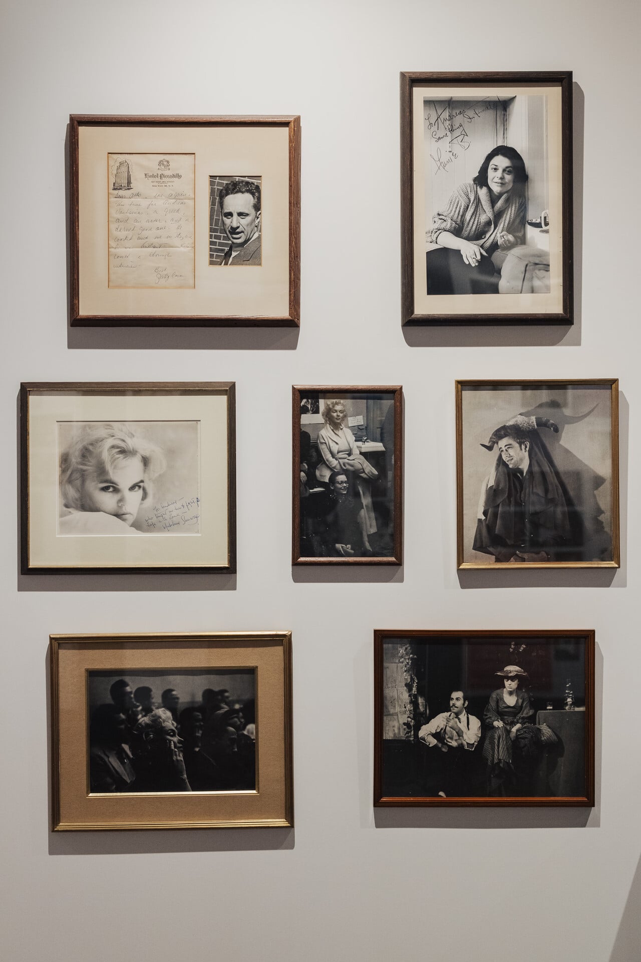 Στιγμιότυπα από το Actors Studio με αυθεντικές φωτογραφίες από τους χώρους και τα μαθήματα του Λι Στράσμπεργκ. Ανάμεσα στις φωτογραφίες, η Μονρόε και ο Τζέιμς Ντιν, αλλά και ο Βουτσινάς. Δίπλα σε φωτογραφία του Ελία Καζάν, μια επιστολή: «Σε θεωρώ ένα θαυμάσιο ταλέντο και θέλω να συνεργαστώ μαζί σου. Όμως πιστεύω πως αυτό που κάνεις τώρα είναι το σωστό: είμαι απολύτως πεπεισμένος ότι θα καταλήξεις να γίνεις ένας εξαιρετικός σκηνοθέτης κινηματογράφου. Και θεωρώ ότι το Παρίσι είναι η κατάλληλη σκηνή για σένα. Εκεί εκτιμάται το ύφος, εκτιμάται η φαντασία, εκτιμάται το ανοίκειο, εκτιμάται η ζωντάνια – και κατ’ αναλογία μπορείς να συμπεράνεις τι πιστεύω για τη Νότια Καλιφόρνια… Με εκτίμηση, Ελία». Φωτ.: Πάρις Ταβιτιάν/LIFO