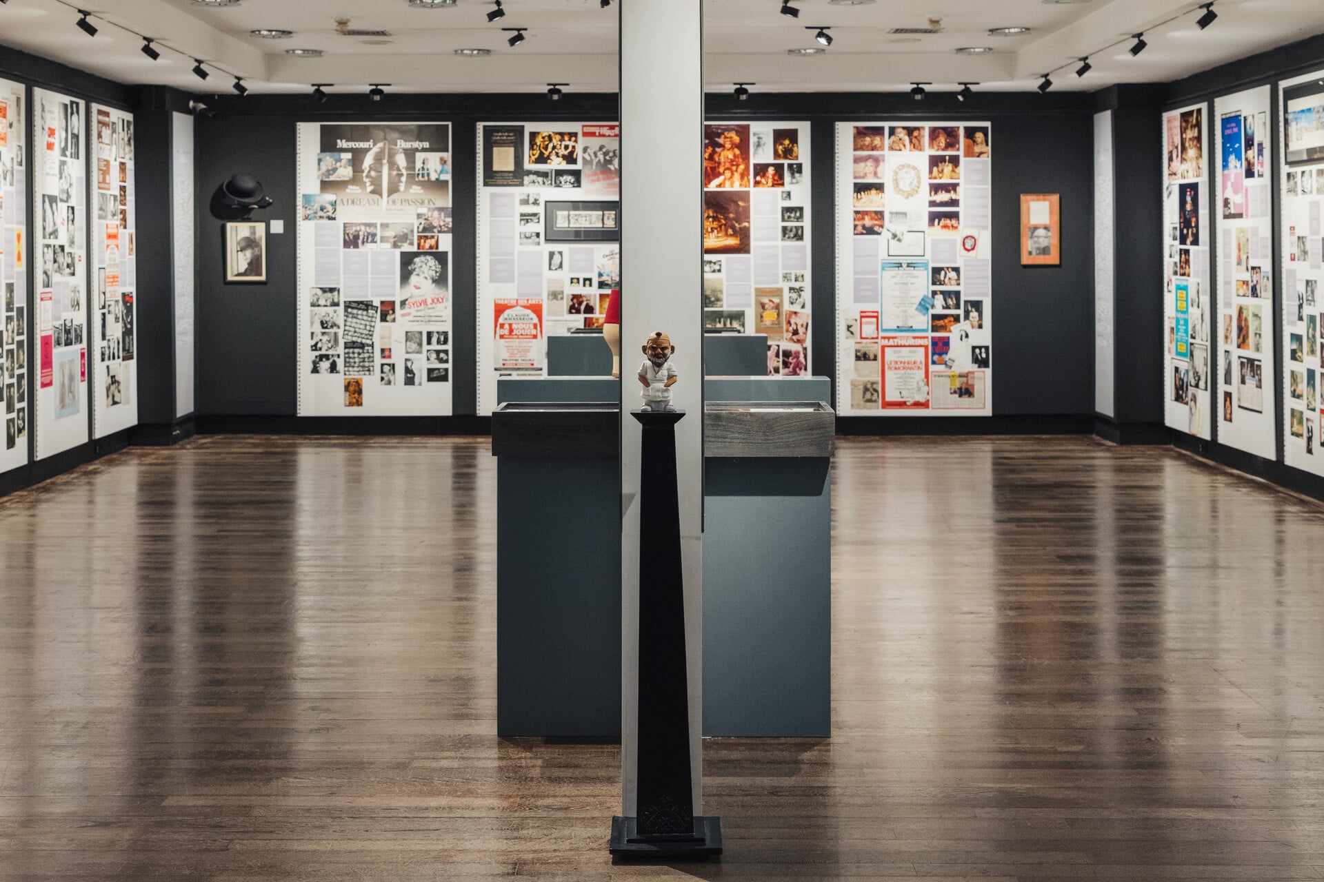 Η έκθεση που μόλις εγκαινιάστηκε στην Ελληνοαμερικανική Ένωση με τίτλο «Εγώ, ο Ανδρέας Βουτσινάς» σε επιμέλεια Ίριδας Κρητικού, Μάριου Βουτσινά και Σταμάτη Γκίκα θα κρατήσει δύο μήνες, μέχρι τις 24 Ιανουαρίου του 2026. Χωρίζεται σε δύο ενότητες που απλώνονται σε δύο αίθουσες. Στη μία αίθουσα βλέπουμε όλη τη διαδρομή της ζωής του μέσα από τις προσωπικές του σχέσεις, τα αγαπημένα του αντικείμενα, τα πολλαπλά πορτρέτα από σημαντικούς ζωγράφους, memorabilia, φωτογραφίες, αφιερώσεις και μία μικρή αναπαράσταση του σπιτιού του στο Παρίσι. Στη δεύτερη αίθουσα ξαναθυμόμαστε μέσα από αφίσες, προγράμματα, φωτογραφίες, μακέτες και props τις ταινίες στις οποίες συμμετείχε και τις παραστάσεις που σκηνοθέτησε σε Νέα Υόρκη, Παρίσι, Αθήνα, Θεσσαλονίκη και αλλού.