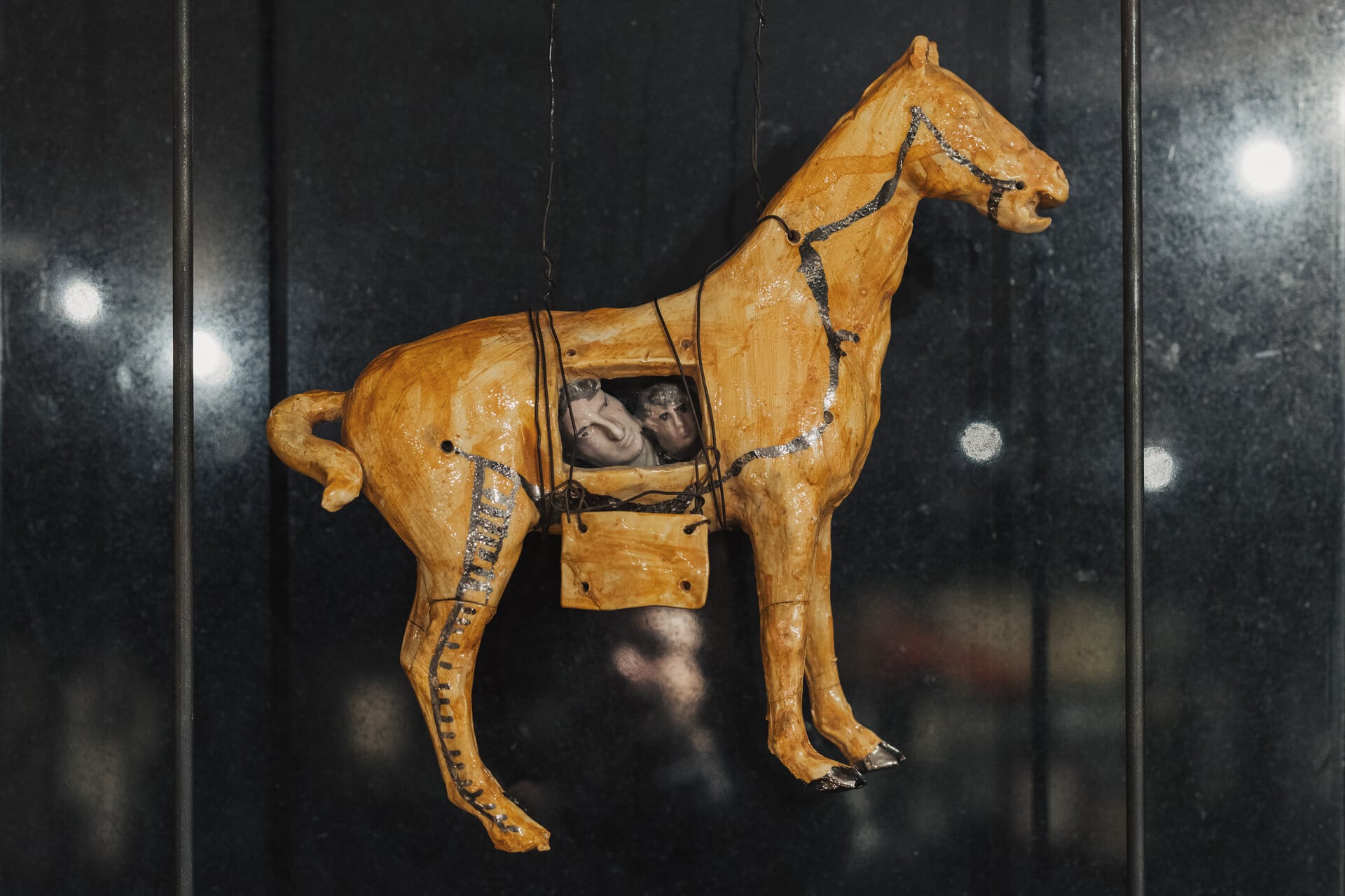 Ο Δούρειος Ίππος από πορσελάνη διά χειρός Άγγελου Παπαδημητρίου, δώρο του τελευταίου στον Βουτσινά με αφορμή την πρώτη τους παράσταση, τις αριστοφανικές «Νεφέλες» το 2000 με το ΚΘΒΕ, όπου ερμήνευσε τον ρόλο του Σωκράτη.