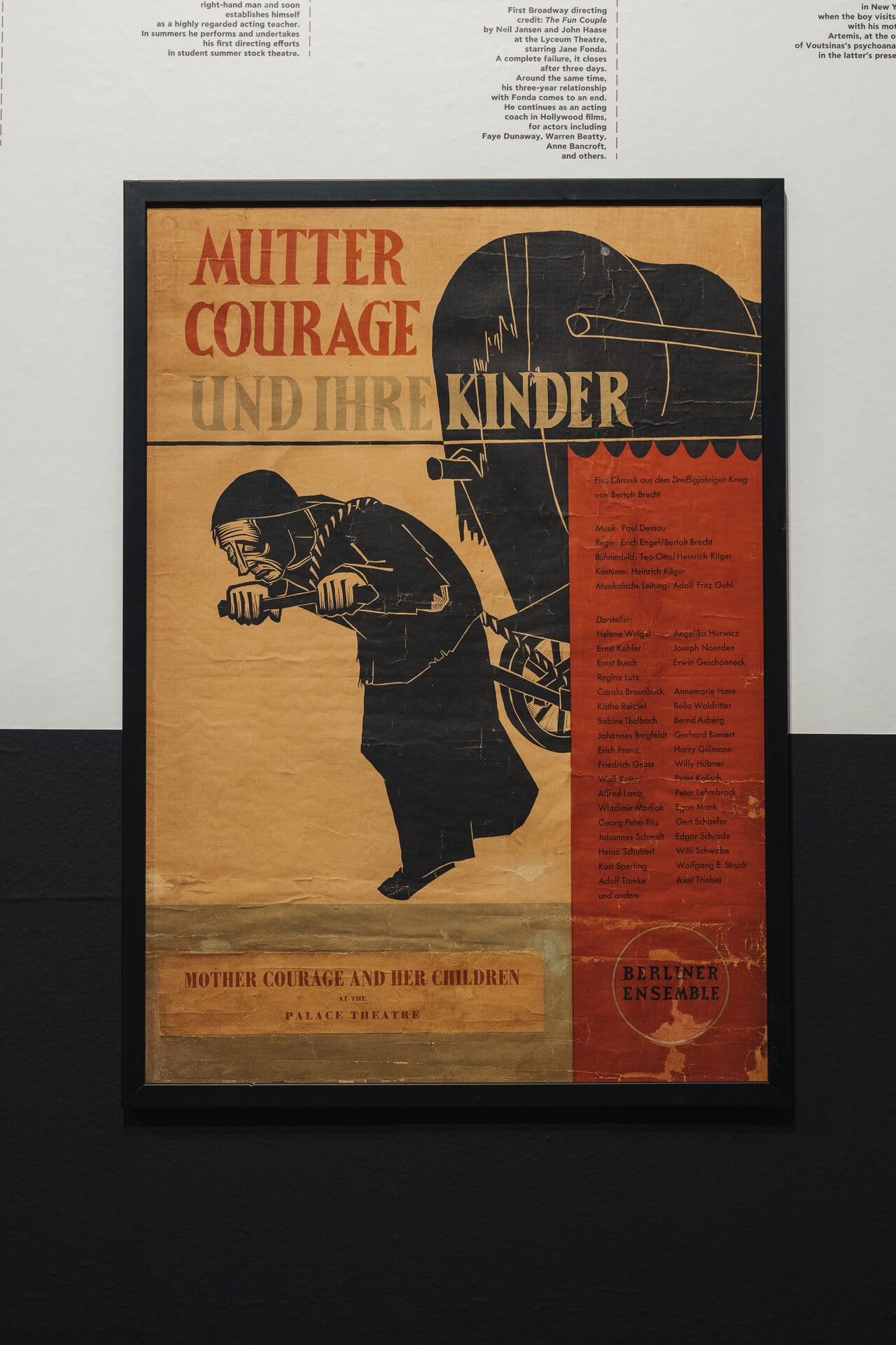 Η αυθεντική αφίσα της παράστασης «Μάνα Κουράγιο» του Μπέρτολτ Μπρεχτ σε σκηνοθεσία του ίδιου με πρωταγωνίστρια την Έλεν Βάιγκελ, που διαφημίζει την παράσταση στο Palace Theater της Νέας Υόρκης, στο πλαίσιο της αμερικανικής περιοδείας του Berliner Ensemble. Φωτ.: Πάρις Ταβιτιάν/LIFO