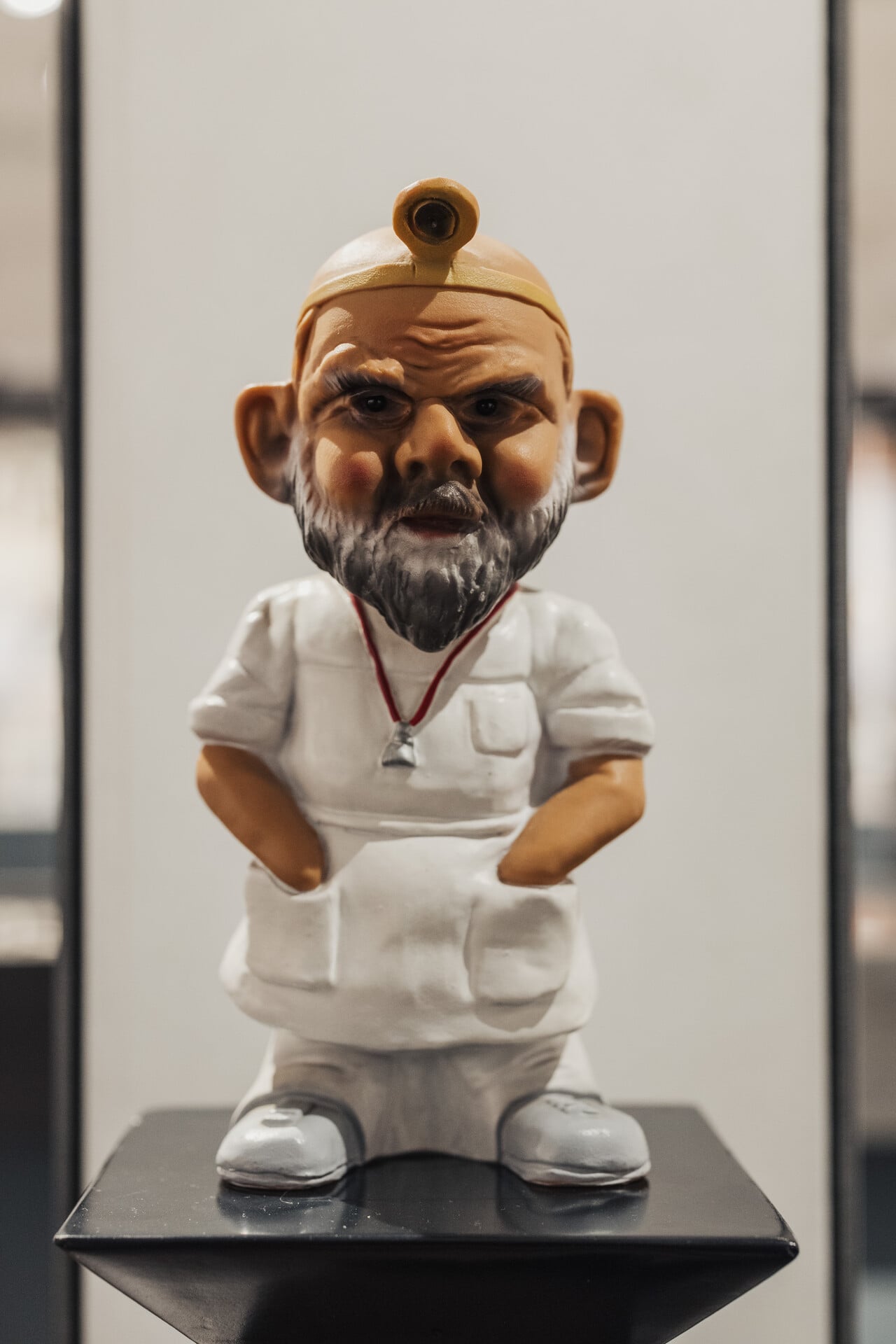 Κουκλάκι με τη μορφή του Ανδρέα Βουτσινά ντυμένου «γιατρός του θεάτρου». Δώρο των μαθητών του από το στούντιο υποκριτικής του Théâtre des Cinquante. Φωτ.: Πάρις Ταβιτιάν/LIFO