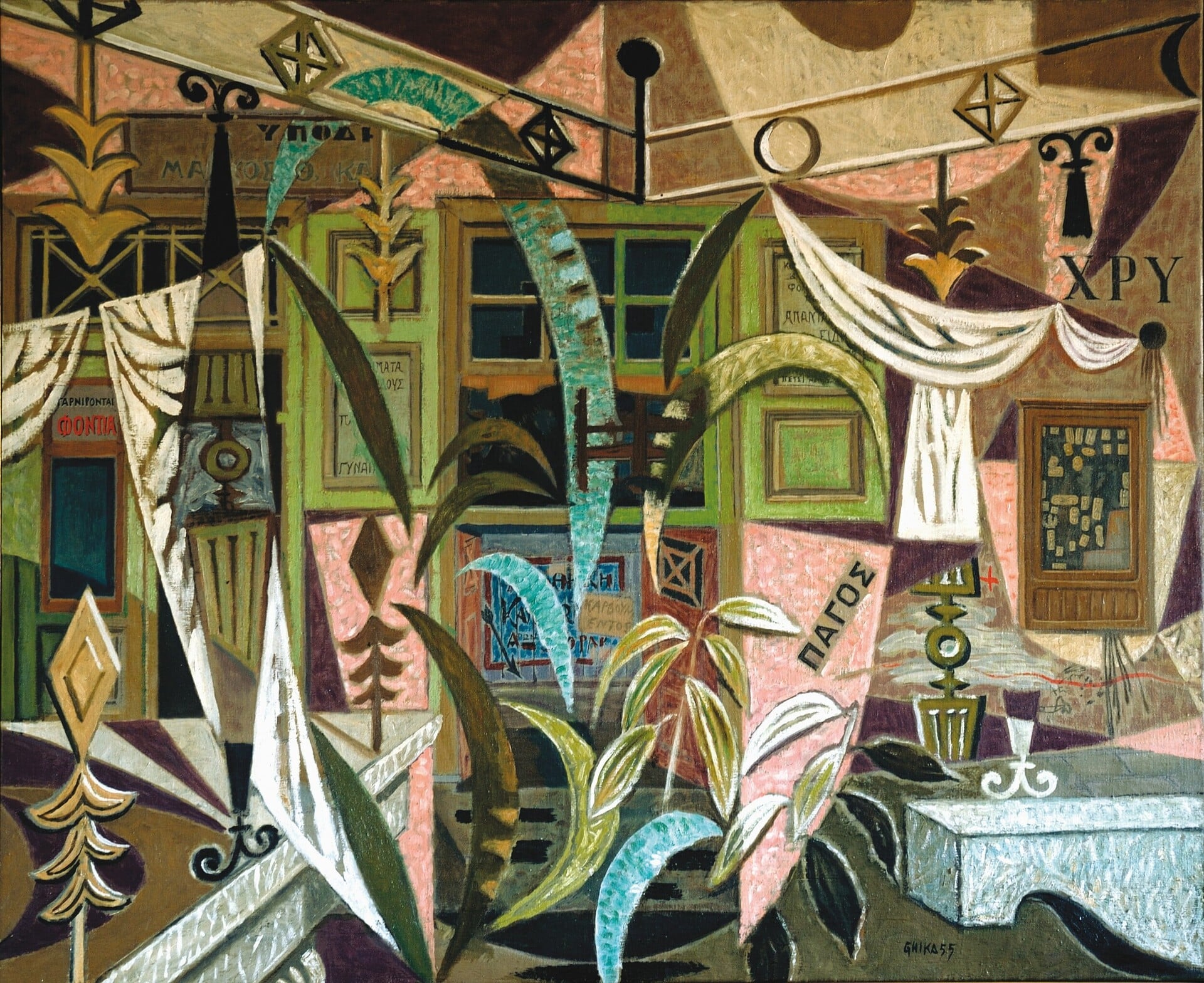 Νίκος Χατζηκυριάκος-Γκίκας, Μπαλκόνι ΙΙ. Σκηνή δρόμου, 1955, Ιδιωτική συλλογή