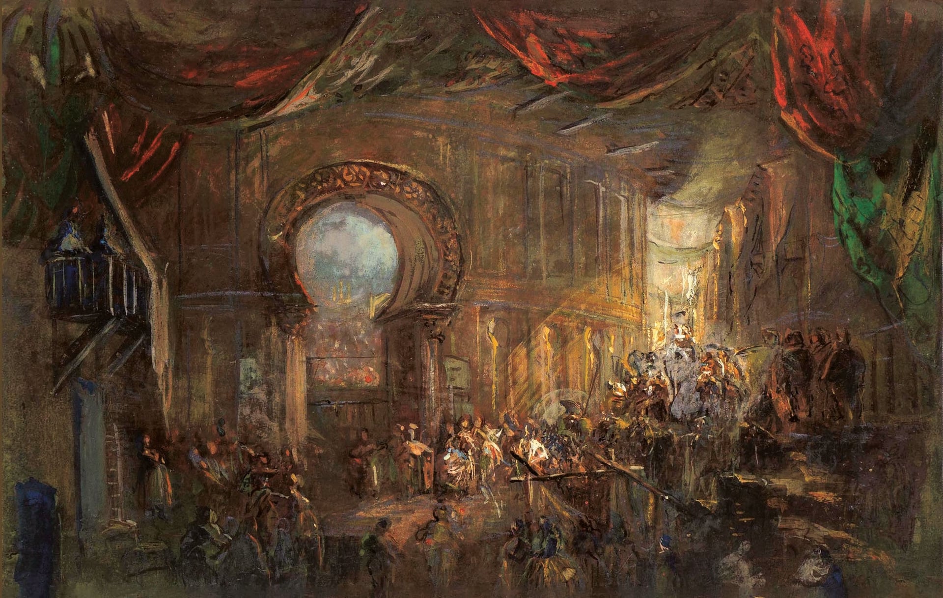 «Κάρμεν», 1959, όπερα σε τέσσερις πράξεις του Ζορζ Μπιζέ. Σκηνοθεσία: Ρεϊμόν Ρουλό, Παρίσι, Οπερά Γκαρνιέ Πλατεία στη Σεβίλλη και η είσοδος μιας αρένας, Δ΄ Πράξη. Γκουάς σε χαρτί, 17 x 26,3 εκ