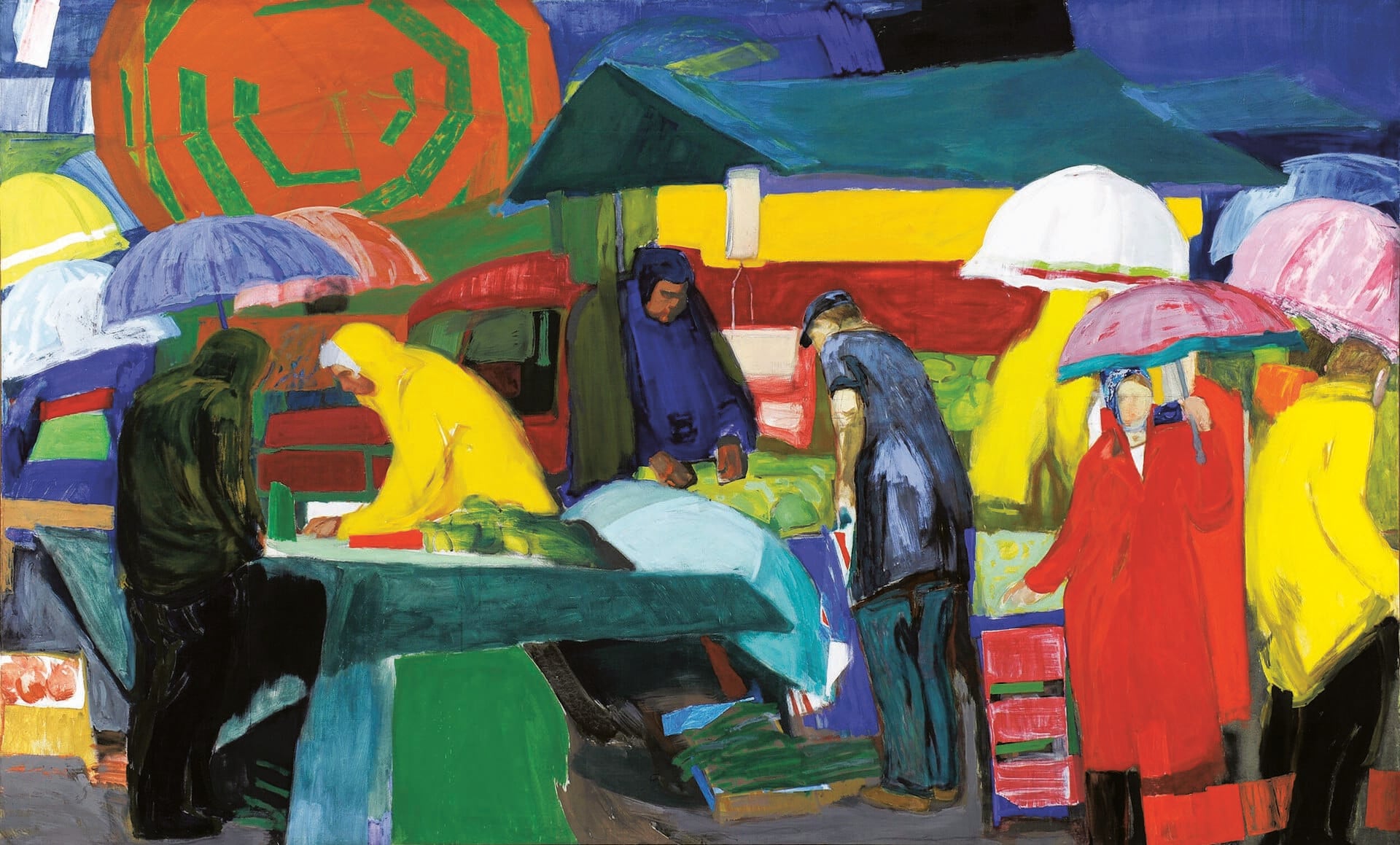 Τέτσης Παναγιώτης (Ύδρα 1925-Αθήνα 2016), Λαϊκή αγορά, 1979 - 1982. Τέμπερα σε μουσαμά. Διαστάσεις έργου: 249 x 405 εκ.. Δωρεά του καλλιτέχνη. Π.9961