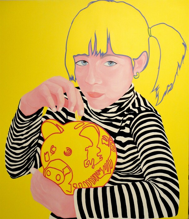 Αυτό το διάστημα παρουσιάζω τρία έργα στις Βιτρίνες Τέχνης του ΟΤΕ στο κέντρο της Θεσσαλονίκης, κατόπιν πρόσκλησης του υπεύθυνου του προγράμματος Γιάννη Αργυριάδη. Αυτά τα τρία έργα αποτελούν μέρος μιας μεγάλης ενότητας, διάρκειας πάνω από μια δεκαετία, και μέρος της διδακτορικής μου διατριβής με τίτλο «Picturing the child: From photographing images to painting». Η έκπληξή μου υπήρξε μεγάλη, γιατί για πρώτη φορά μπορώ να δω τη ζωγραφική μου, όπως και οι θεατές, μέσα σε έναν συνεχή διάλογο, στην καρδιά ενός αστικού τοπίου. Αυτή η αμεσότητα και η επικοινωνία καθιστούν το πρότζεκτ μοναδικό.
