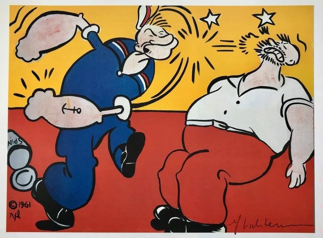 Την ίδια εποχή αρκετοί Αμερικανοί ζωγράφοι άρχισαν να εντάσσουν στοιχεία από τα κόμικς στη δουλειά τους. Ο Λιχτενστάιν αντλούσε έμπνευση από τα κόμικς από το 1958. Ο Άντι Γουόρχολ δημιούργησε τους πρώτους πίνακές του με το συγκεκριμένο στυλ το 1960. Ο Λιχτενστάιν, χωρίς να γνωρίζει το έργο του Γουόρχολ, δημιούργησε το «Popeye» το 1961, το οποίο έβαλε στην πρώτη ατομική του έκθεση και θεωρείται από τους κριτικούς τέχνης επαναστατικό τόσο ως εξέλιξη της ποπ αρτ όσο και ως έργο μοντέρνας τέχνης.