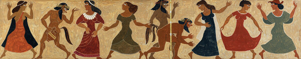 Εκεί πρέπει να αναζητηθεί η αγάπη τους για τον καθημερινό άνθρωπο, για τα ρεμπέτικα και το μπουζούκι. Λατέρνα, ντέφι, λαϊκό πάλκο, οι μουσικοί του Σικελιώτη θα συναντήσουν στην έκθεση τις τέσσερις εντυπωσιακές ψηλόλιγνες «Αρχόντισσες του ρεμπέτικου» του Τάσσου με τα πιο «σύνθετα παιχνίδια λεπτομέρειας» στα ενδύματα, δίνοντας αφορμή να θυμηθούμε τη μουσική και εικαστική διαδρομή του είδους (ρεμπέτικο, αρχοντορεμπέτικο, έντεχνο), που άγγιξε μεταπολεμικά σπουδαίους δημιουργούς και ερμηνευτές (Χατζιδάκις, Θεοδωράκης, πρβλ. «Όμορφη Πόλη», «Οδός Ονείρων» 1962).