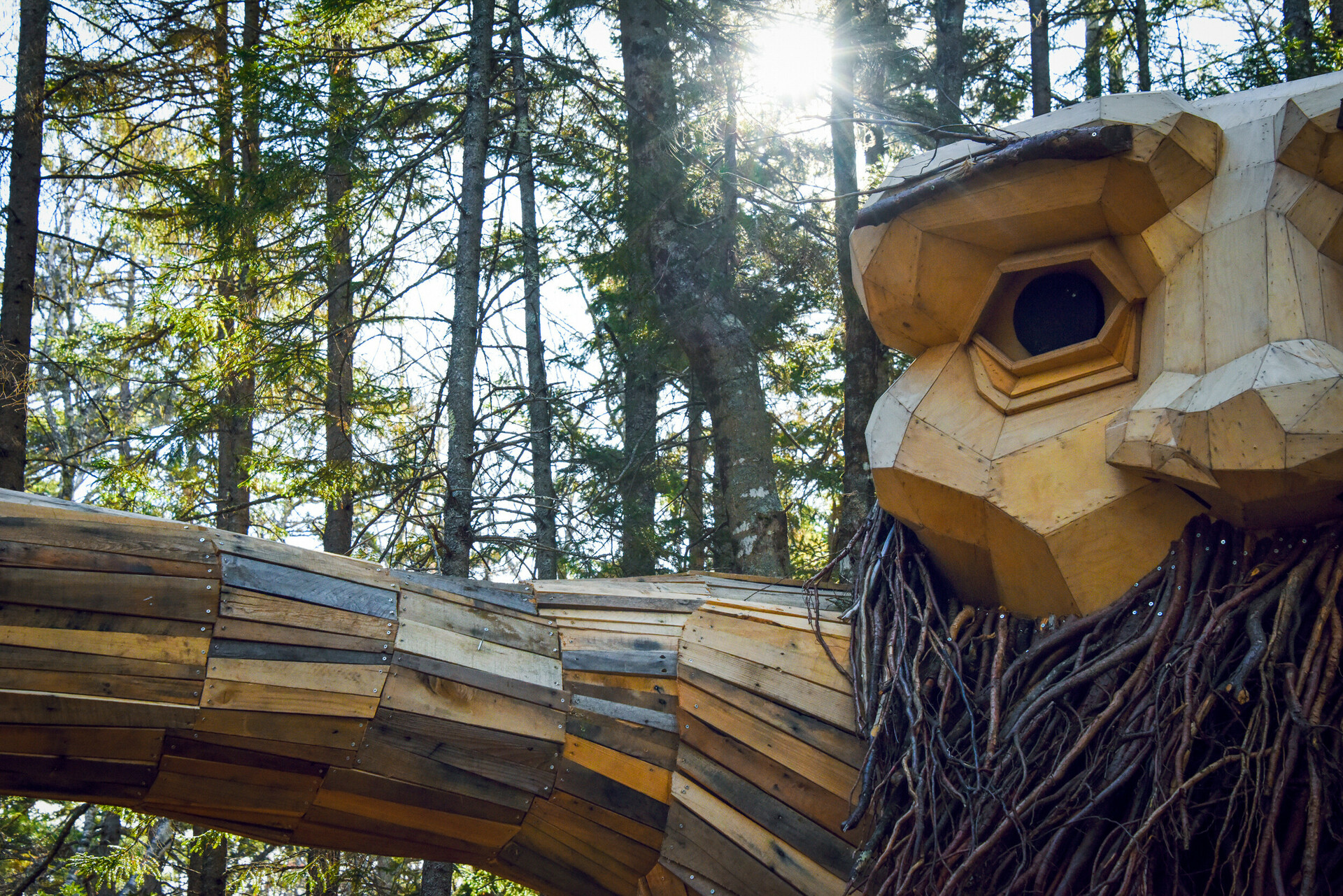 Παλιοσίδερα, κλαδιά, παλιές παλέτες και συντρίμμια είναι τα υλικά που χρησιμοποιεί ο Thomas Dambo για τους γίγαντές του, τα διάσημα τρολ του δάσους και πέντε από αυτούς που δημιούργησε ο καλλιτέχνης που ανακυκλώνει στη δουλειά του τα υλικά παρουσιάστηκαν και εγκαταστάθηκαν στους Βοτανικούς Κήπους του παράκτιου Maine.