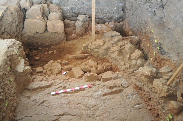 Επίσης, πολύ ενδιαφέρον παρουσιάζει η ανεύρεση απόθεσης υπολειμμάτων γεύματος κατά τις εργασίες θεμελίωσης του συγκροτήματος (εικ. 10). Η απόθεση απαρτιζόταν κυρίως από αιγοπρόβατα (αναγνωρίστηκαν και ελάχιστα οστά χοίρων και βοοειδούς).