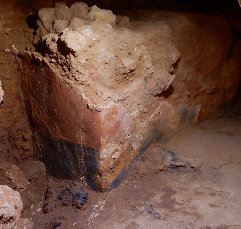 Αναγνωρίστηκαν πορτοκαλλόχρωμες και σκούρες κυανές επιφάνειες, οι οποίες είναι χρωματισμένες, όπως επιβεβαίωσαν οι χημικές αναλύσεις της καθηγήτριας του Πολυτεχνείου Κρήτης δρος Νόνης Μαραβελάκη (εικ. 7).