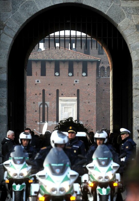 Mέλη της κυβέρνησης Ρέντσι, άνθρωποι των γραμμάτων, καθηγητές και πρυτάνεις ιταλικών πανεπιστημίων, εκδότες, καλλιτέχνες και χιλιάδες άνθρωποι που αγάπησαν και εμπνεύστηκαν από το έργο του Ουμπέρτο Έκο συγκεντρώθηκαν σήμερα στο επιβλητικό Sforza Castle του 15ου αιώνα στο Μιλάνο, για το συγκινητικό τελευταίο αντίο.