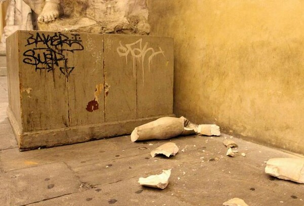 Στην προσπάθειά του να βγάλει το τέλειο selfie επιχείρησε να σκαρφαλώσει στο άγαλμα και στηρίχτηκε στο αριστερό του πόδι. Το γλυπτό δεν άντεξε και το πόδι αποκόπηκε από το σώμα, σπάζοντας σε μικρά κομμάτια. Ο δράστης όχι απλά δεν ενημέρωσε κάποιον για το τι είχε συμβεί, αλλά εκμεταλλεύτηκε το γεγονός πως δεν τον είχε δει κανείς και εξαφανίστηκε.