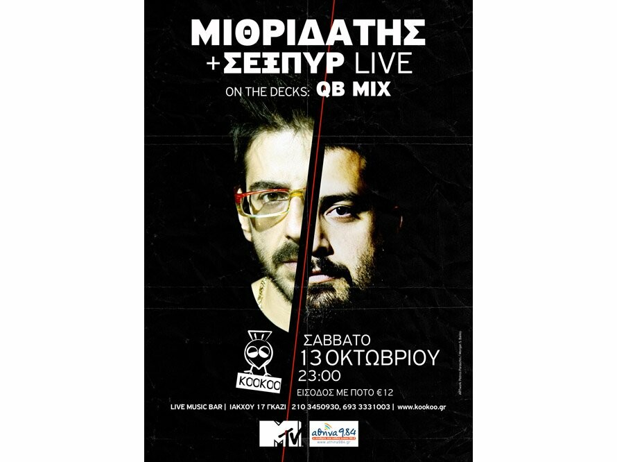 Ο ΜΙΘΡΙΔΑΤΗΣ και ο ΣΕΞΠΥΡ, σας προσκαλούν το Σάββατο 13 Οκτωβρίου, στο KooKoo Live Music Bar σε ένα έμπειρο και εμπειρικό Live!
