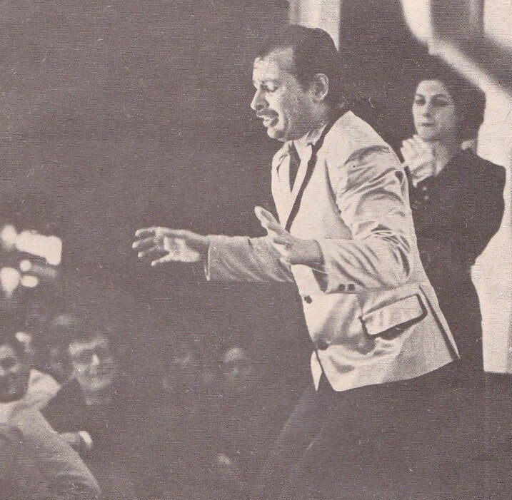 «Εκείνο το χειμώνα δούλεψα στο Θεμέλιο με τον Μητσιά, την Κωχ και την Τσανακλίδου, όπου έκατσα όλη τη σεζόν. Εκεί έλεγα το “Πολύ ωραίο στυλ”, το “Μωρό μου”, “Το εμπρός για μια καινούργια Ελλάδα” και κάναμε όλοι μαζί ένα φινάλε, που ήτανε κάτι κείμενα του Γιάννη Νεγρεπόντη και διάφορα κομματάκια από τραγουδάκια παλιά: “Πάμε για ύπνο Κατερίνα” ή “Είμαι για σένα και είσαι για μένα μωρό μου”, “Για μας κελαηδούν τα πουλιά” και διάφορα τέτοια, σ’ ένα φινάλε κάπως θεατρικής φύσεως, τύπου μπουάτ. Εντάξει πλάκα είχε (σ.σ. τι να έλεγε ο άνθρωπος). Εκεί έπαιζα με την ορχήστρα του Θεμέλιου που ήτανε: ο Αντώνης Τουρκογιώργης κιθάρα, ο Γιώργος Τσουπάκης ντραμς (σ.σ. από τον Ακρίτα του Λογαρίδη), ένας Ανακρέων μπάσο, ο Κώστας Γανωσέλλης είχε βοηθήσει στις ενορχηστρώσεις κ.λπ.».