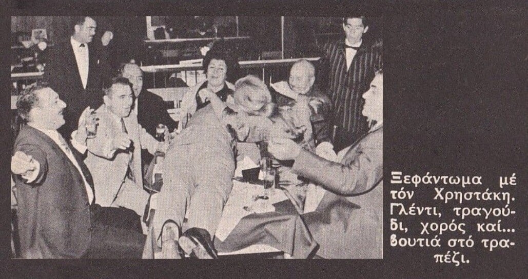 Η επιτυχία αυτών των τραγουδιών θα εξαργυρωνόταν, κατά πρώτον, το καλοκαίρι του ’68, στη Νεράιδα της Λένας Παμέλα, στο Καλαμάκι, σ’ ένα απίστευτο πρόγραμμα, μοντέρνο, ελαφρολαϊκό και λαϊκό, που είχε στήσει ο Γιώργος Κατσαρός και στο οποίο θα εμφανίζονταν, πέραν του Χρηστάκη, η Μαρινέλλα, ο Γιάννης Πουλόπουλος, ο άσσος μπουζουξής Στέλιος Ζαφειρίου, ο μοντέρνος Αϊτινός Ζαν Ρομπέρ, το χορευτικό ντουέτο Βαγγέλης Σειληνός-Έρρικα Μπρόγιερ, η γαλλίδα ποπ τραγουδίστρια Christine Nerac, μπαλέτα, ταχυδακτυλουργοί κ.λπ. Οι μεσοαστοί, οι αστοί και οι... ολιγάρχες της εποχής διασκέδαζαν δίχως αύριο σ’ αυτούς τους χώρους, που είχαν ένα ειδικό ελεύθερο, από το δικτατορικό καθεστώς, να τα δίνουν όλα δίχως περιορισμούς (και σε θέματα σπασιμάτων, ηχορύπανσης κ.λπ.). Μάλιστα, εκείνη την εποχή (αρχή Αυγούστου ’68) ο Χρηστάκης θα βρισκόταν (μαζί με άλλους καλλιτέχνες) και στον Σκορπιό του Αριστοτέλη Ωνάση. Στο γλέντι δε, που είχε στηθεί εκεί, λέγεται πως σε μια στιγμή τσακίρ κεφιού είχαν υπογράψει στο πουκάμισό του, ή μάλλον σε... κομμάτι από το πουκάμισό του, ο Ted Kennedy και η Jackie (δυόμισι μήνες πριν από το γάμο της με τον Αρίστο). Το κομμάτι αυτό θα το φύλαγε, έκτοτε, ο Χρηστάκης σαν το πιο ακριβό έπαθλό του...