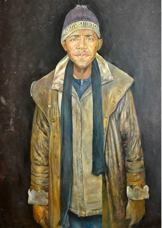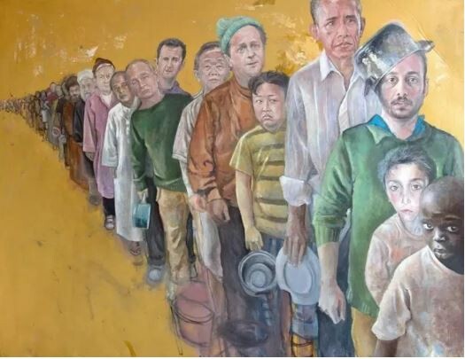 Τους τελευταίους 19 μήνες ζωγράφισε έργα στα οποία οι ηγέτες του κόσμου, όπως ο Ντόναλντ Τραμπ, ο Μπαράκ Ομπάμα, ο Ταγίπ Ερντογάν, η Άνγκελα Μέρκελ και ο Μπασάρ Αλ Άσαντ παρουσιάζονται ως πρόσφυγες ή άστεγοι.