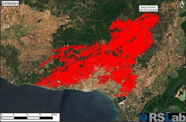 Το Εργαστήριο Τηλεπισκόπησης του ΙΤΕ (Ίδρυμα Τεχνολογίας και Έρευνας), κατέγραψε την μέχρι σήμερα καταστροφή στην Αλεξανδρούπολη, με τη χρήση δορυφορικών δεδομένων Sentinel-2. Η φωτιά περικύκλωσε την πόλη απ' όλες τις πλευρές με τις πυροσβεστικές δυνάμεις να δίνουν μεγάλο αγώνα για να μην εισέλθει στην πόλη.