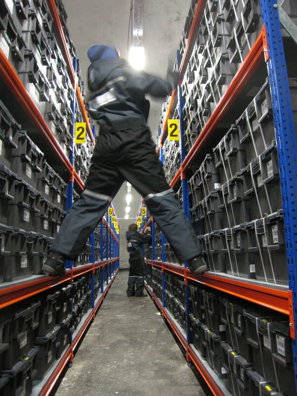 Τα τρία δωμάτια αποθήκευσης που βρίσκονται στο πίσω μέρος σφραγίζονται με αεροστεγείς πόρτες. Κάθε δωμάτιο μπορεί να χωρέσει περίπου 1,5 εκατομμύρια μικρές συσκευασίες σπόρων. Η παρακολούθηση πραγματοποιείται ηλεκτρονικά: δεν υπάρχουν υπάλληλοι που δουλεύουν εκεί σε καθημερινή βάση. Το θησαυροφυλάκιο μπορεί να αποθηκεύσει μέχρι και 4,5 εκατομμύρια δείγματα, τα οποία συντηρούνται στους -18° C, αλλά ακόμα και αν το σύστημα συντήρησης καταστραφεί, το κλίμα της Αρκτικής θα κρατήσει τους σπόρους ζωντανούς για χιλιάδες χρόνια.