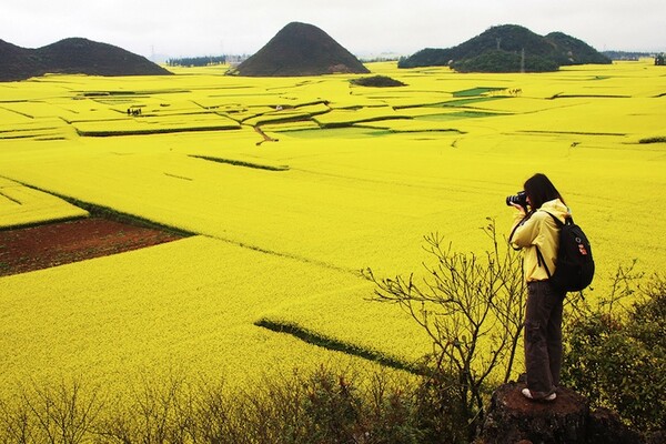 Πρόκειται για φωτογραφίες της Lan Yin. Στην περιοχή Luoping της Κίνας, την άνοιξη, τεράστιες εκτάσεις με ανθισμένη ελαιοκράμβη δημιουργούν αυτό το εκπληκτικό θέαμα. Το φυτό, από τους σπόρους του οποίου παράγεται λάδι, καλλιεργείται σε ολόκληρη την Κίνα. Η περίοδος άνθησης του όμως είναι διαφορετική για κάθε περιοχή και εξαρτάται από τη θερμοκρασία και τις καιρικές συνθήκες που επικρατούν σε αυτή. Η Luoping είναι περιοχή στο νότιο Yunaan όπου υπάρχουν οι περισσότερες εκτάσεις με ελαιοκράμβη:
