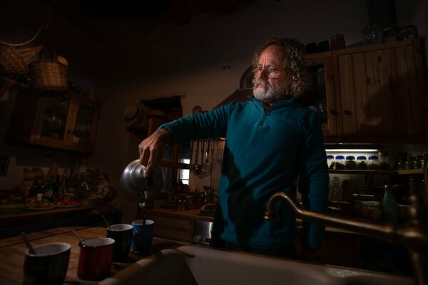 Ζει σε μια αγροικία από χώμα, ξύλο, πέτρα και φως, τίποτε άλλο. Με τα διαβάσματά του και το βιολί του, χωρίς ρεύμα, γιατί η αταραξία της ψυχής ξεκινάει από τα μάτια, και όταν τα μάτια είναι σε ένταση, ούτε το σώμα ούτε η ψυχή μπορούν να γαληνέψουν.